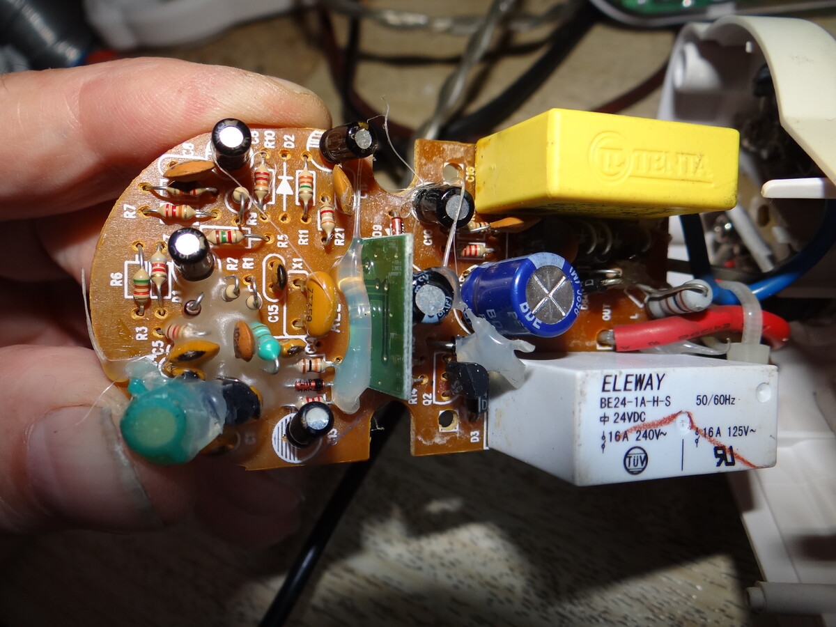 Das die Dinger irgendwann plötzlich kaputt gehen, scheint üblich zu sein. Doch was passiert genau? Ich habe 2 verschiedene Modelle. Bei einem Modell lags an dem Abgleich des Empfängers, der weggelaufen ist. Da wirkt sich dann so aus, dass speziell "Ausschalten" nur im Abstand von wenigen CM geht. - Frage, wie gleicht man die Spule des 433MHz Empfängers genau nach? Bei dem anderen Modell (siehe Fotos) bin ich gleich bei einem defekten 470uF Siebelko fündig geworden. Aber es geht trotzdem nicht. Von dem Modell habe ich einen Zweiten, gleiches Elko Problem, und geht auch nicht. Die Spannung am Siebelko liegt nur bei ca. 9V, anstatt rund 24V. Der X2 Kondensator ist ok (0,47uF). Brückengleichrichter und Z-Diode ist ebenfalls ok. 230V Serienwiderstand (100 Ohm) ist ebenfalls in Ordnung. Die Leistungsaufnahme des ganzen Gerätes beträgt 0,5W, also im normalen Bereich, sodass eine Überlastung des "Netzteils" auch unwahrscheinlich wäre. Kennt jemand das Modell?