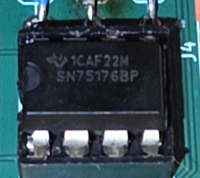Fälschung wäre schon möglich. Ich vermute aber eher einen Schaltungs- oder Lötfehler. Der Schaltplan ist leider so unübersichtlich dass sich da gut ein Fehler verstecken kann. Vermutlich wäre es am besten den Schaltplan Stück für Stück aufzuräumen. Hier jetzt erst mal mit SN75176 und seinem Drumrum anfangen. Dabei immer prüfen dass die Netzliste gleich bleibt.