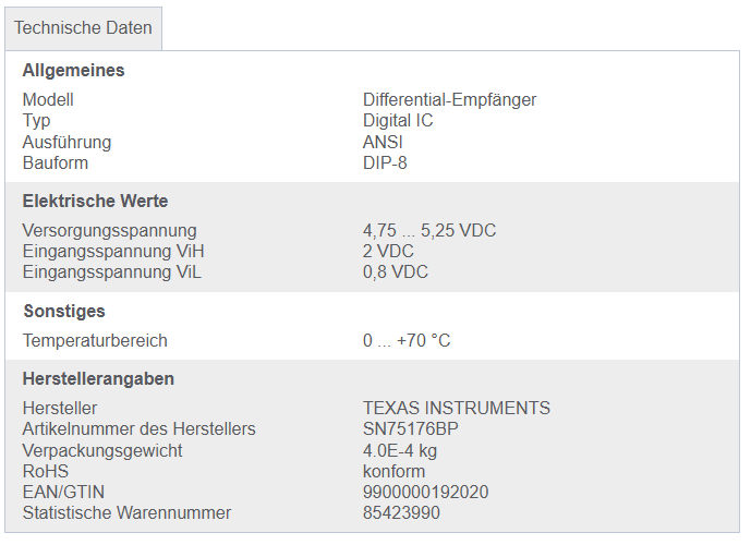 Mal eine Frage: der SN75176 ist für 5V ausgelegt. Der Raspi für 3.3V. Gibt es einen Baustein für 3.3V ? Außerdem: Vor kurzem hat mir jemand LVDS empfohlen. Das dürfte moderner sein.
