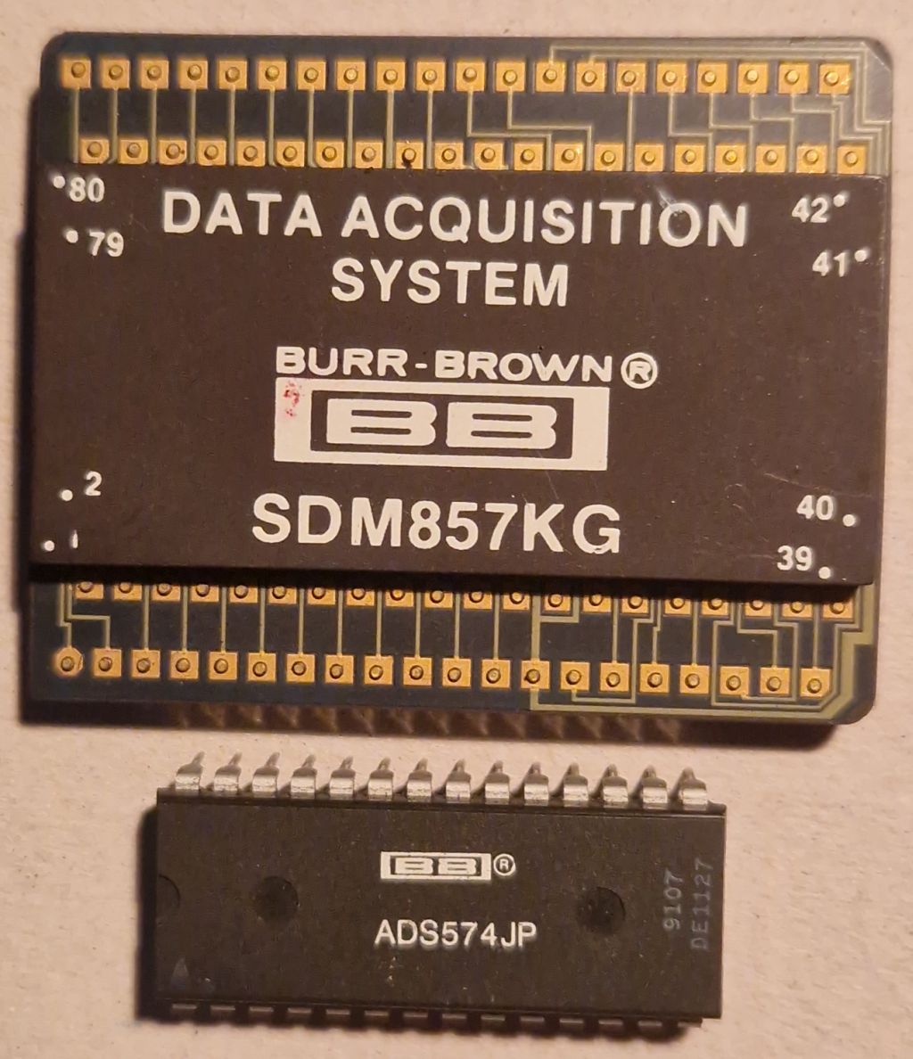 Im Angebot ein richtig schöner Hybrid von Burr-Brown auf einem Keramikträger und als Zugabe noch ein ADS574 vom selben Hersteller. EBAY nennt für den SDM857 Preise jenseits 100$, hier aber für nur 10€. Versand ginge im Maxibrief für 3€ nur innerhalb D. Grüße