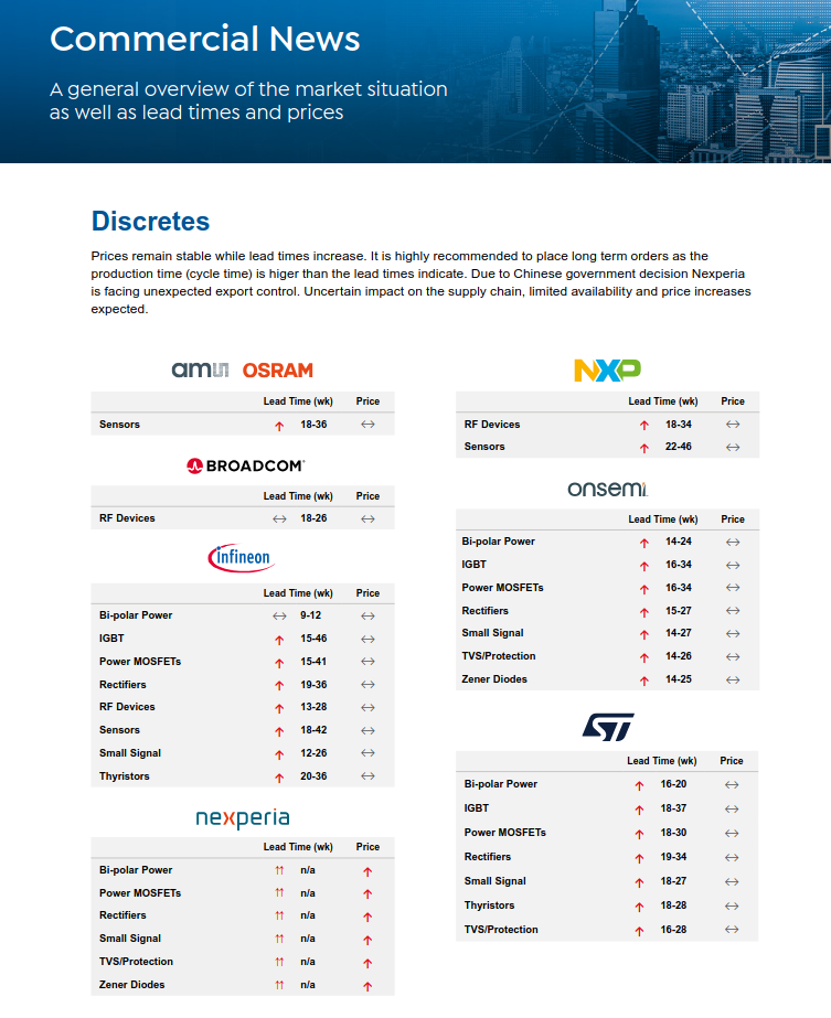 Im vor wenigen Tagen erschienenen Trendliner von EBV sind die Wirkungen klarer ersichtlich – alle Sektoren, in denen Nexperia aktiv ist, weisen steigende Lead Times auf.