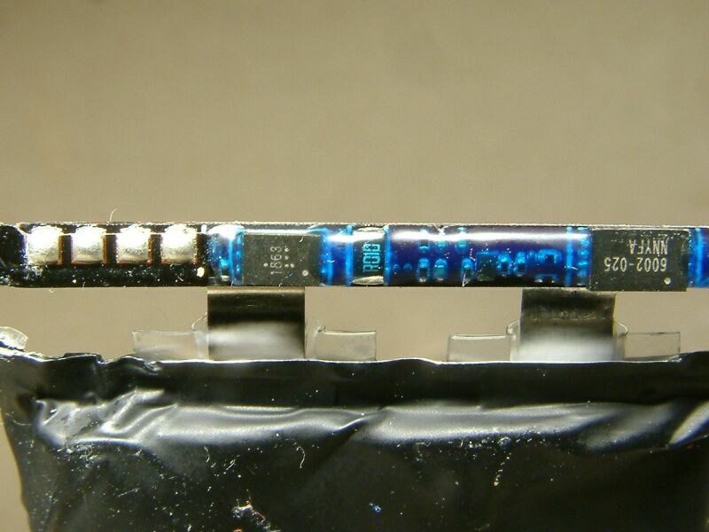 Gustav K. schrieb: > Wie am ausgebauten Akku kann ich auch an dem neuen Akku keine > Spannung messen. Beim alten Akku ging ich davon aus, dass der > Akku den Ausbau nicht überlebt hat. Muss mich korrigieren: Man kann an dem winzigen Folienstecker des Akkus sehr wohl die Akkuspannung messen, allerdings nicht mit den üblichen vorne abgerundeten Prüfspitzen. Es müssen nadelspitzen Prüfspitzen sein, mit denen man sich übel stechen kann (rot = "+" und blau = "-"). > Ich las irgendwo, dass im Akku ein Chip sein soll. Da der alte Akku eh weg kommt, habe ich mal das verklebte U-Profil oben abgeknibbert, da steckt tatsächlich eine schmale Platine drin. Habe dann mal bisschen rumgemessen und es fällt auf, dass beide iPhones nicht den Hauch einer Ladung aufnehmen, wenn ich selbige direkt mit 5V via USB verbinde. Das ist extrem ungut, denn ich wollte die Smartphones im Notfall auch aus einem 12V Akku via DC/DC-Wandler laden können. Ein Samsung S5 genehmigt sich immerhin 200mA bei 5V (=1W), am originalen Samsung Steckernetzteil läd es mit 6,8W. Was muss man tun, damit sich das iPhone laden lässt und das Samsung die volle Ladeleistung zieht?