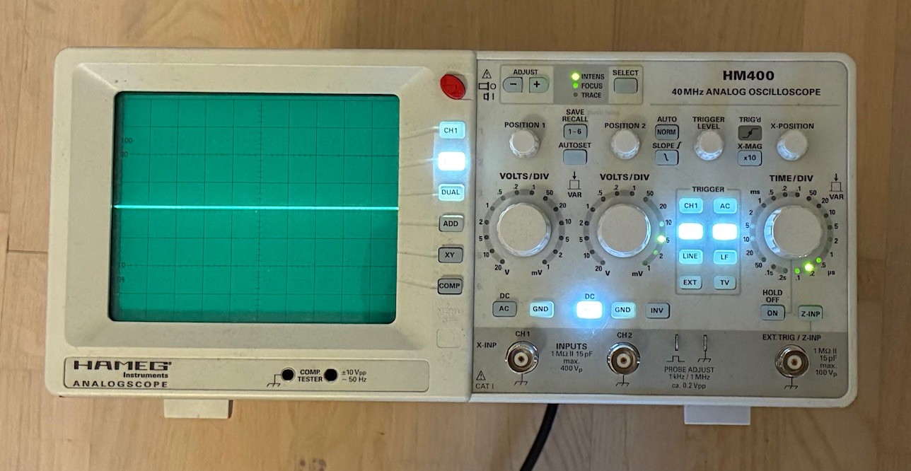 Verkaufe mein HM400 Oszilloskop von Hameg. Es gehört zur letzten Baureihe und damit wohl zu den jüngsten analogen Oszillokopen von Hameg bzw. Rohde & Schwarz. Es besitzt ein rein digitales User-Interface. Voll funktionsfähig, alle Knöpfe/Schalter/LEDs funktionieren. Innen wie außen sauber und in einem sehr guten Zustand. Nur der Tragegriff ist beim Vorbesitzer verloren gegangen. Mitgeliefert wird kein weiteres Zubehör außer einem Stromkabel. Preis: 150 Euro Gruß Haydar p.s. ich sehe grad, das das Oszi auf den Bilder dreckig aussieht. Das ist nur etwas Staub, das Oszi ist ansonten sauber. Abholung natürlich möglich, ich wohne im PLZ-Bereich 22589. Ich kann auch mit dem Wagen etwas entgegen kommen.