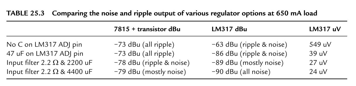 Hallo, schau Dir mal mein Netzteil für einen Phonoverstärker an. Mir genügte die Brummunterdrückung eines LM317 nicht und habe deshalb noch eine weitere Stufe nachgeschaltet. Der Ripple betrug danach nur noch 1,9 µVss. Eigentlich wollte ich danach noch jeden Kanal mit einer eigenen symmetrischen Spannung versorgen. Aber das war unnötig. Da die Platine fertig war habe ich eben Teile nicht bestückt. Mit der elektronischen Siebung hatte ich schon vor zig Jahren etwas gemacht. Damals gab es noch kein LTspice. Sonst hätte ich dieser Technik mehr Aufmerksamkeit gewidmet. Es sind locker bis zu 40 dB und mehr bis weit über 20 kHz Dämpfung möglich. mfg Klaus