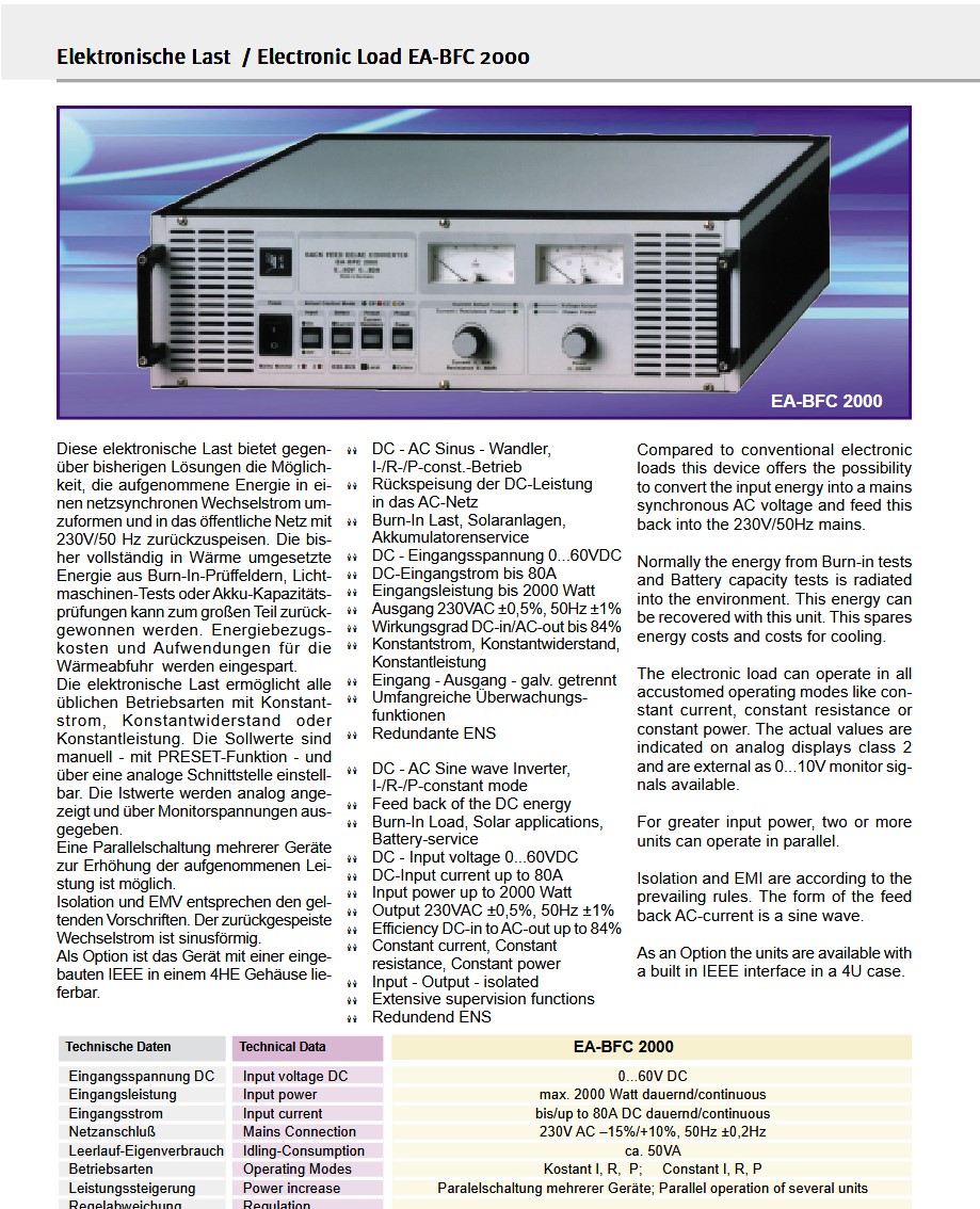 Biete hier eine Last mit Rückspeisung an. Funtkionierte bis jetzt einwandfrei! DC Eingang bis 60 V und 80A. Ich stelle mir 300 Euro vor. Versand übernehme ich zur Hälfte für Deutschland.