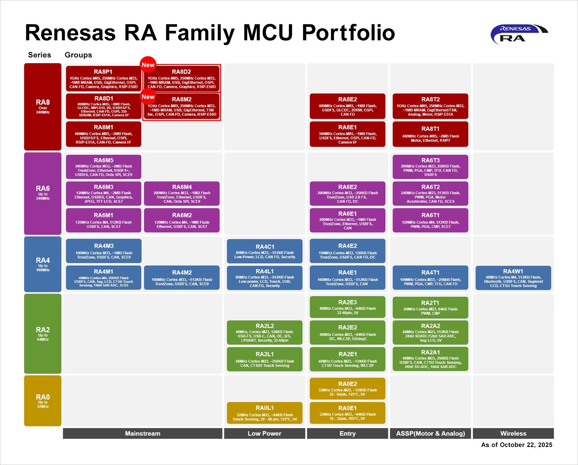 Renesas RA8M2 / RA8D2 – mehr 1GHz-Mikrocontroller mit MRAM