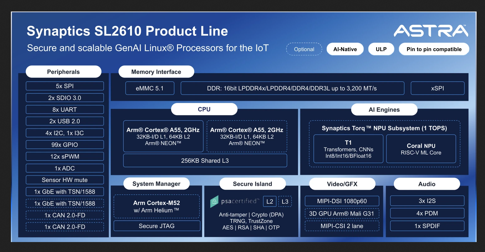 Synaptics Astra SL2610 – MPU mit neuem Google CORAL-AI-Beschleuniger