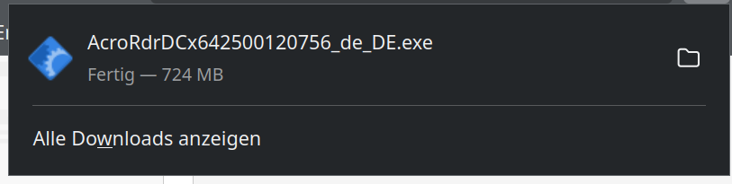installiere mir gerade den Acrobat Reader auf einem Win11 Laptop. Die Datei ist knapp 900MB groß! Seit wann ist das Ding denn fast ein GB groß? https://www.chip.de/downloads/Adobe-Acrobat-Reader-PDF-Viewer-kostenlos_12998358.html So ein Unsinn...