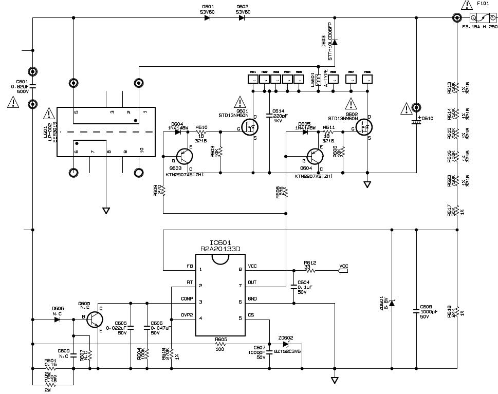 Also der PFC Controller: R2A20133D von Renesas. Aber da ist sicher noch mehr kaputt.