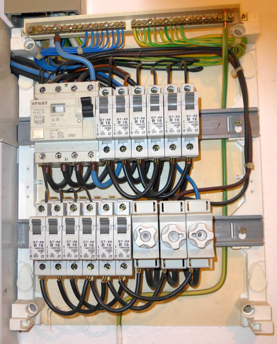 Etwas anderes als B16 war wohl einfach nicht im gängigen Sortiment des Installateur. B16, ein paar FIs und Neozed mit einem Kästchen verschiedener Einsätze im Lager/Auto und alles ist abgedeckt. Auslösen ist beim Festangeschlossenen DLE äußerst unwarscheinlich, darum sind Schmelzsicherungen ok. Diese Bequemen Standartlösungen und Daumenregeln sind bei Installateuren auch heute noch beliebt, niemand rechnet gerne im Einzelfall nach. Das führt leider häufig zu suboptimaler Auslegung der Anlagen. Aber die Isolation der zuleitung vom E-Herd sieht sehr angeschmort aus, Glänzend und enden verformt. Bitte mal klemmen nachziehen, Querschnitt nachrechnen und Wärmebildkamera bei Vollgas draufhalten. Viel Billiger als einen Wohnungsbrand zu riskieren.