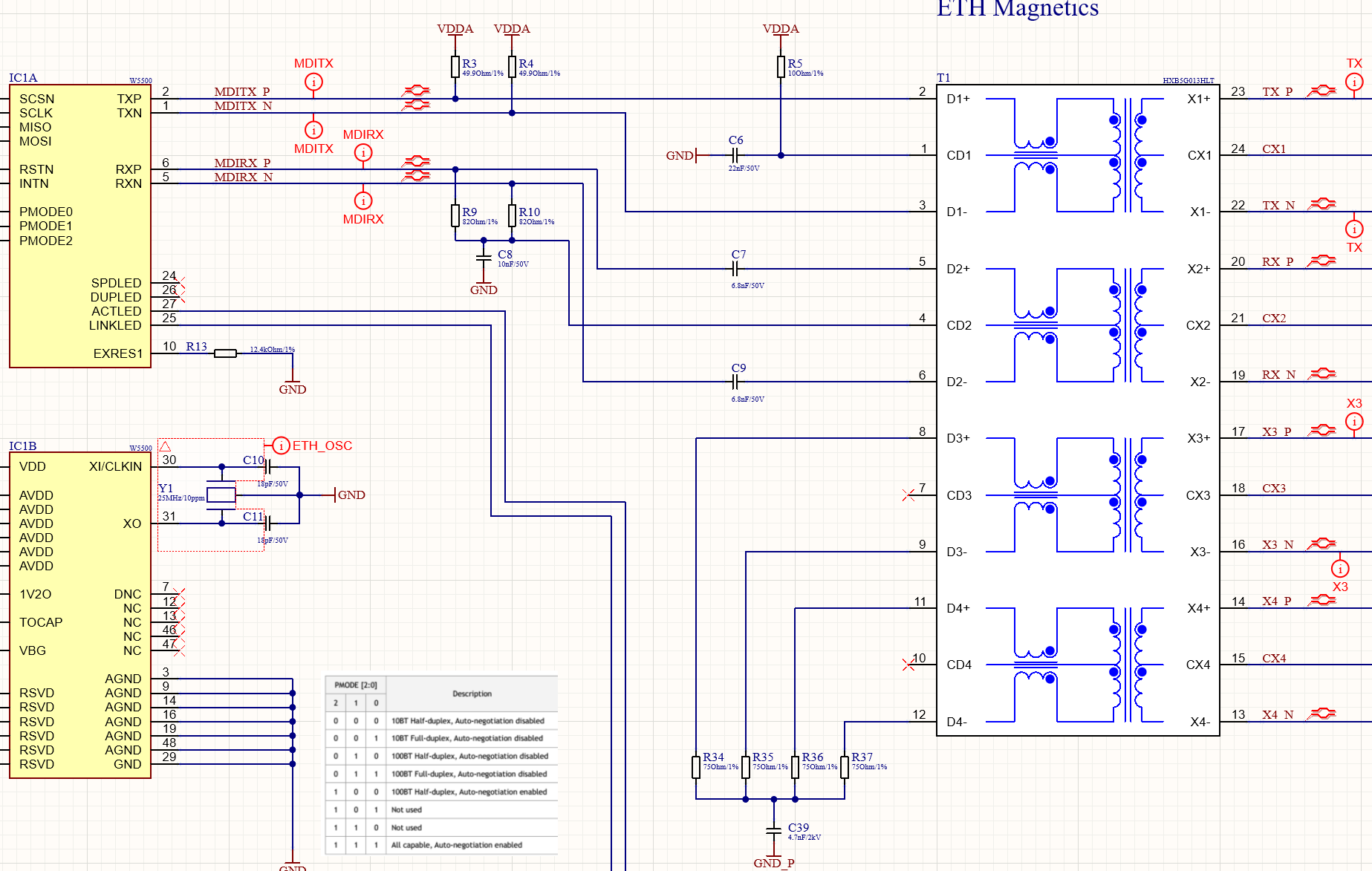 Hallo Zusammen, Ich versuche gerade ein PoE IEEE802.3bt für 90W PD zu designen und bin mir bezüglich folgenden Punkten noch nicht sicher, vielleicht kann mir ja jemand von euch das beantworten: 1.) Auf der Sekundärseite verwende ich den W5500, da habe ich alles wie in den Reference Schematics designet, passt das auch für PoE)? https://docs.wiznet.io/assets/files/w5500_sch_v110_use_trans_-18b3297138bdf20fafd0f95e4c19358d.pdf 2.) Bezüglich Primärseite muss für PoE anders terminiert werden, sprich eine split Bom-Smith termination. Dabei habe ich mich zusätzlich noch an einem TI Ref. Design orientiert, denkt ihr das passt so? https://www.ti.com/lit/df/tidrta2/tidrta2.pdf?ts=1761656664831 Im Design fehlt noch die TVS Diode für VETH+- und dann natürlich der PD Treiber (z.B MP8020) sowie die Bulk Caps. Passt das so, oder habe ich was vergessen? Grüsse, Bert