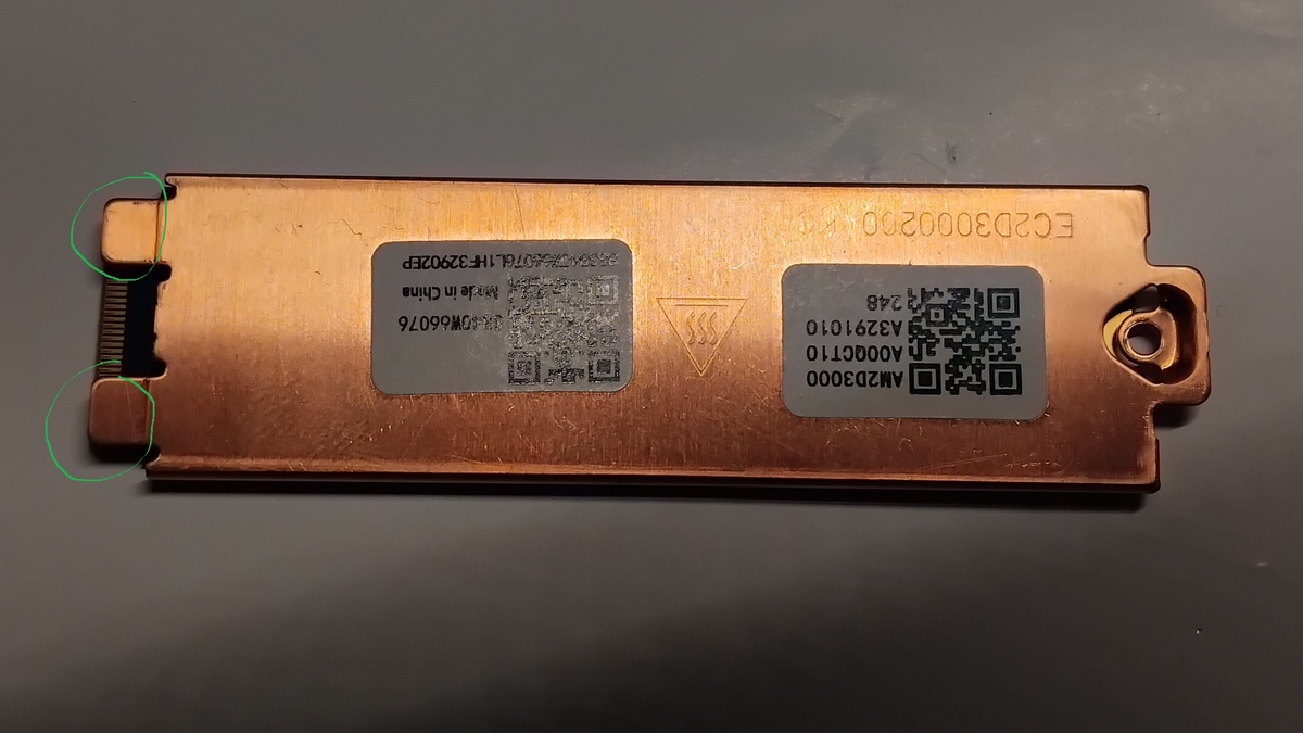 Kilo hat's erkannt. Bescheuerte Konstruktion, andere bekommen das auch ohne derartige Verrenkungen und vor allem Spezial-M.2-Sockel hin. Hier ist der M.2-Sockel gebrochen, da ist mehr kaputt als nur ein paar Lötstellen abgerissen.