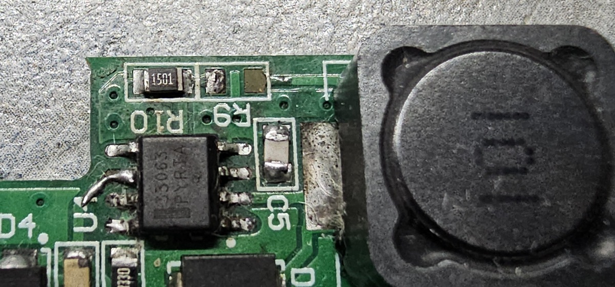 Jasmin B. schrieb: > MosFet > (33063) Das ist ein MC33063, ein Schaltregler. Basierend auf den Leiterbahnen könnten R9/R10 der Spannungsteiler zum Einstellen der Ausgangsspannung sein. U9 ist ein LDO für die 3.3V, demnach müsste der Schaltregler irgendwas um die 5V machen. Mit 4k5 und den 1k5 von R10 würde sich eine Ausgangsspannung von 5V ergeben, die ich für sehr wahrscheinlich halte. Also mein Lösungsvorschlag: 4.5kOhm. 4k7 wären 5.16V, was wohl immer noch okay sein könnte.