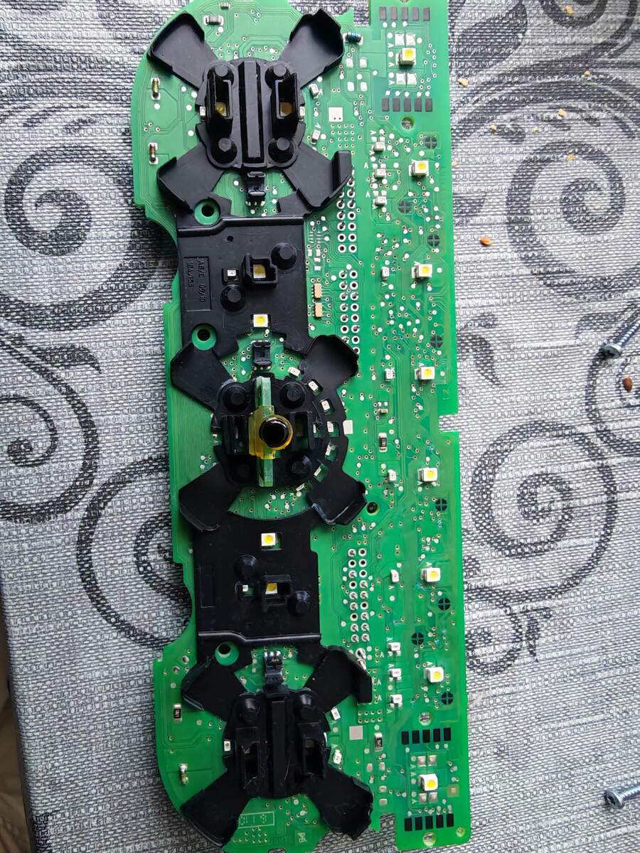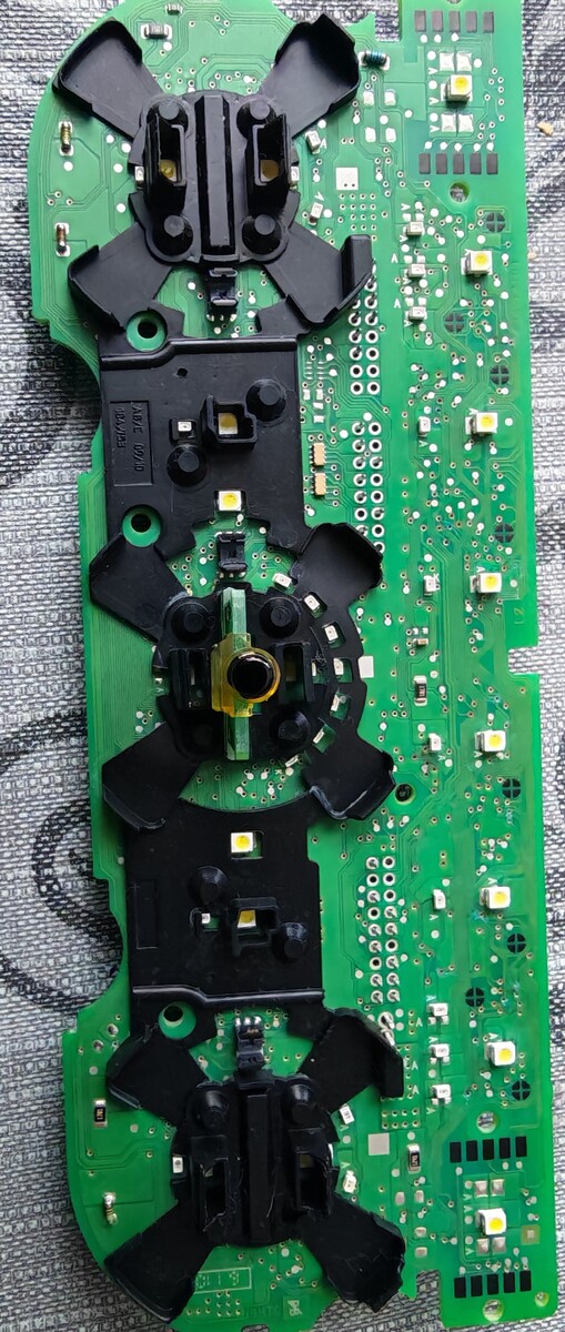 Guten Abend zusammen, ich hoffe ich darf hier mein Problem darstellen. Ich habe tatsächlich keinen Plan von elektrischen teilen. Bitte verzeiht mir daher wenn ich spezifische Fragen nicht beantworten kann. Vielleicht gibt es ja auch jmd. der aus meiner nähe kommt und sich das Bedienfeld mal anschauen möchte/will?! Also ich habe o.g. Bedienfeld was nicht mehr leuchtet, obwohl es definitiv an ist. Das Betrifft die Standheizung, Heckscheibenheizung, AC, ect. Das einzigeste was leuchtet ist die Sitzheizung und das Drehrad um den Lüfter zu erhöhen. Alles andere wird nicht beleuchtet. Ich hatte das Teil mal zerlegt und hatte eine Spur die grau/blau/grün war. Ich vermute irgendwas ist ausgelaufen?! Zum reinigen habe ich Isopropanol genommen. Natürlich hat es nichts gebracht. Was könnte hier passiert sein und an wem könnte man sich wenden, der dies evtl. reparieren kann?! Ich hänge noch ein paar Bilder ran. Die Teilenummer ist 565907044bh. Ich bedanke mich schon jetzt für evtl. Antworten. VG