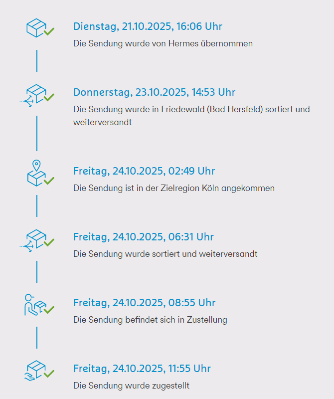 Heiko schrieb: > Hmmm schrieb: >> Ich tippe eher darauf, dass das R für Routing steht und der Barcode >> Informationen dafür enthält. > Nee, der Barcode bedeutet einfach "61" und man findet mit einer > Bildersuche genau denselben Code auf eben diesen R-Labels. Weil diese anderen Sendungen evtl. ins gleiche Paketzentrum transportiert wurden wie Deine? Die Google-KI behauptet (wie üblich ohne Quellenangabe), dass das Hermes-Verteilzentrum 61 in Hürth wäre, das würde zu Deinem Tracking passen. Aber warum ist Dir das überhaupt so wichtig? Frag halt bei Hermes nach, vielleicht erklären die es Dir.