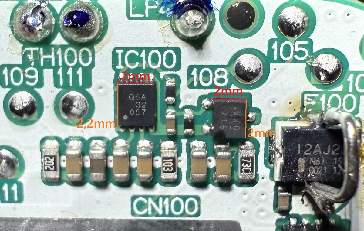 Hallo zusammen, ich habe ein Akkupack vor mir liegen (2x18650 Li-Ion in Serie), bei dem die Zellen tiefentladen waren. Nach dem Austausch der Zellen gegen gebrauchte, aber geladene Zellen funktioniert das dazugehörige Gerät leider nach wie vor nicht. Die Zellen sind an eine kleine Platine angelötet, an dessen Ausgang ich keine Spannung messen kann, obwohl die Zellen wie gesagt geladen sind. Auf der Platine sitzen drei MOSFETs, eine Sicherung (bereits erfolglos gebrückt) und zwei weitere Chips, die ich nicht zuordnen kann (siehe Bilder im Anhang). Kann jemand mit der Beschriftung etwas anfangen? Ist einer der Chips möglicherweise ein Schutz-IC, welches aufgrund der Tiefentladung der Originalzellen den Stromfluss nun dauerhaft unterbricht? Viele Grüße