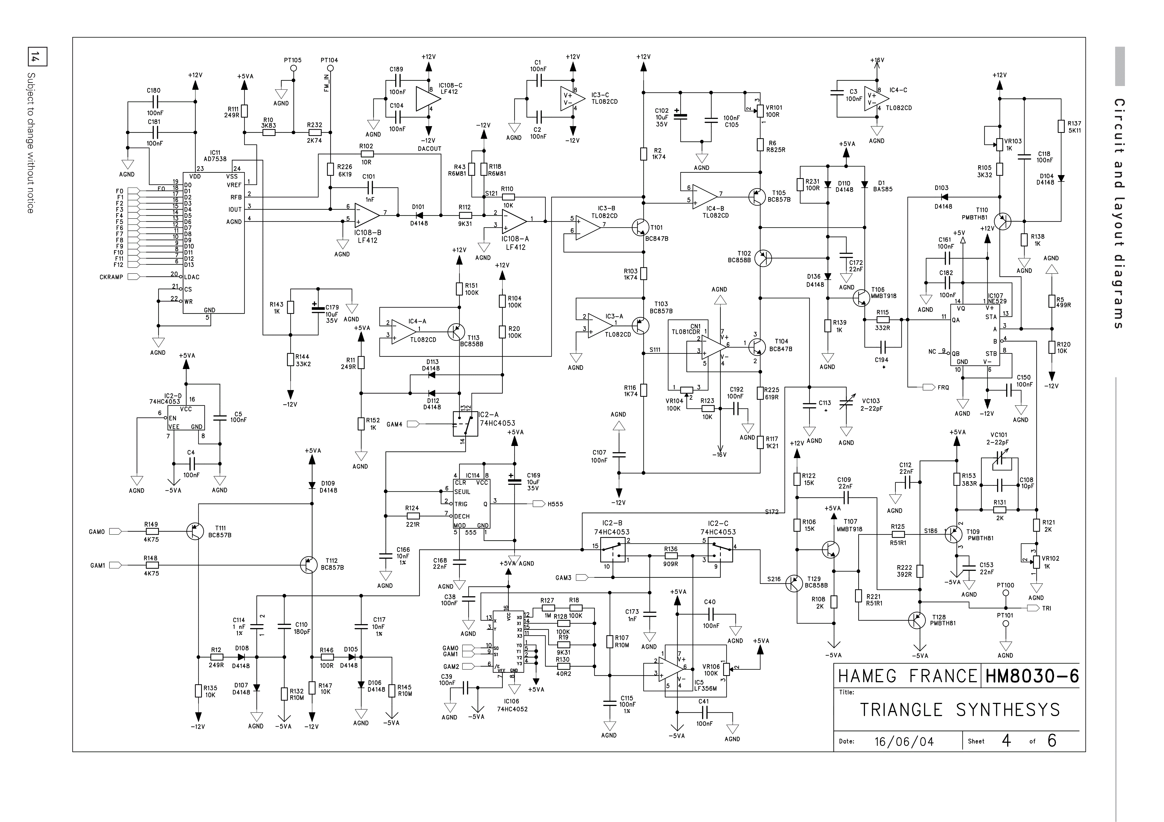 Und wo ist der externe Eingang angeschlossen? "GAM" ist die Abkürzung von französisch "gamme" https://dict.leo.org/franz%C3%B6sisch-deutsch/gamme "Skala Serie Bandbreite Nennbereich Produktpalette Tonleiter Fabrikationsprogramm Palette Farbskala" Ich sehe digitale Eingangssignale GAM 0 bis 4, die Analogschalter umschalten. Dazu einen 14bit DA-Wandler, der wohl die interne Wobbelspannung abgibt.