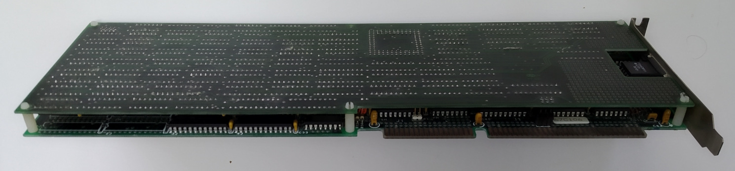 Ich habe hier noch eine LaserView-Grafikkarte von Sigma Designs. Sie stammt aus derselben Zeit wie auch die TIGA- und die 8514-Grafikkarten (und war auch ähnlich teuer). Im Gegensatz zu diesen hatte sie keinen Grafikprozessor und nur 4 Graustufen, dafür aber eine für damalige Verhältnisse sagenhafte Auflösung von 1664×1200 (2 MPixel) bei 60 Hz. Diese Auflösung übertraf sogar die der meisten Workstations. So hatten bspw. die damaligen Sun-Workstations nur 1152×900 (1 MPixel), wahlweise monochrom (1 Bit/Pixel) oder Farbe (8 Bit/Pixel). Wie man auf den Fotos sieht, besteht die Karte genau genommen aus zwei Karten, die Huckepack übereinander montiert sind. Auf Grund ihrer Geometrie belegt sie im PC-Gehäuse zwei Slots. Die Huckepackplatine gab es auch als integrierten Baustein in einem PLCC-84-Gehäuse, der in einen anstelle der im Quadrat angeordneten Buchsenleisten bestückten PLCC-Sockel auf der Basisplatine eingesetzt wurde. Der Bildspeicher umfasst 512 KiB und kann mit 16 D41264C-15-Chips (die auch heute noch problemlos erhältlich sind) verdoppelt werden. Dadurch erhöht sich die Zahl der Graustufen auf 16, und es würden dann alle Anforderung des TE erfüllt: Stefan schrieb: > Suche ISA Grafikkarte > ... > Die Karte sollte mindestens 1 MB haben. Ich glaube aber nicht, dass der TE einen passenden Monitor dafür hat ;-)