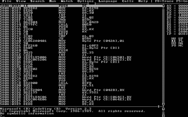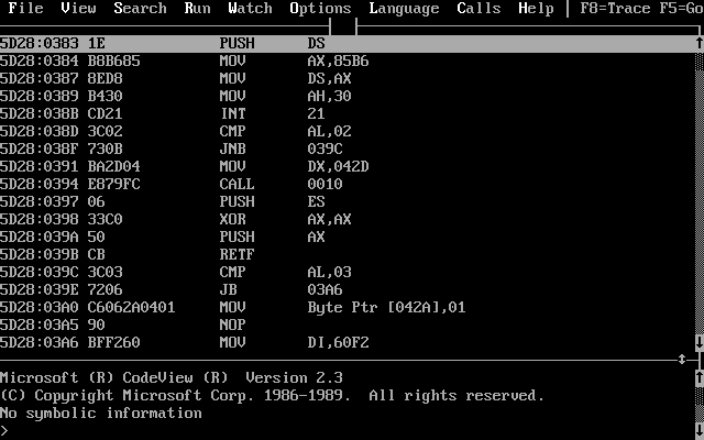 Yalu X. schrieb: > Ich habe hier noch eine LaserView-Grafikkarte von Sigma Designs. Sie > stammt aus derselben Zeit wie auch die TIGA- und die 8514-Grafikkarten > (und war auch ähnlich teuer). Im Gegensatz zu diesen hatte sie keinen > Grafikprozessor und nur 4 Graustufen, dafür aber eine für damalige > Verhältnisse sagenhafte Auflösung von 1664×1200 (2 MPixel) bei 60 Hz. > Diese Auflösung übertraf sogar die der meisten Workstations. So hatten > bspw. die damaligen Sun-Workstations nur 1152×900 (1 MPixel), wahlweise > monochrom (1 Bit/Pixel) oder Farbe (8 Bit/Pixel). Es gab auch ET4000 Karten mit hoher Auflösung. Eine Prism Excelsior Pro konnte beispielsweise bei 1600x1200 16 Farben mit ihrem einen MB. Man sollte aber einen wirklich grossen Multisync dabei haben. An die Refreshrate erinnere ich mich aber nicht mehr. ☺ Im Anhang mal ein Schnappschuss, was Codeview mit MDA/Hercules so konnte.
