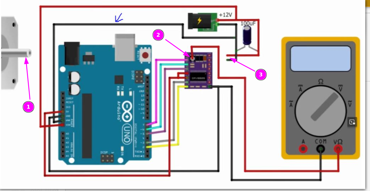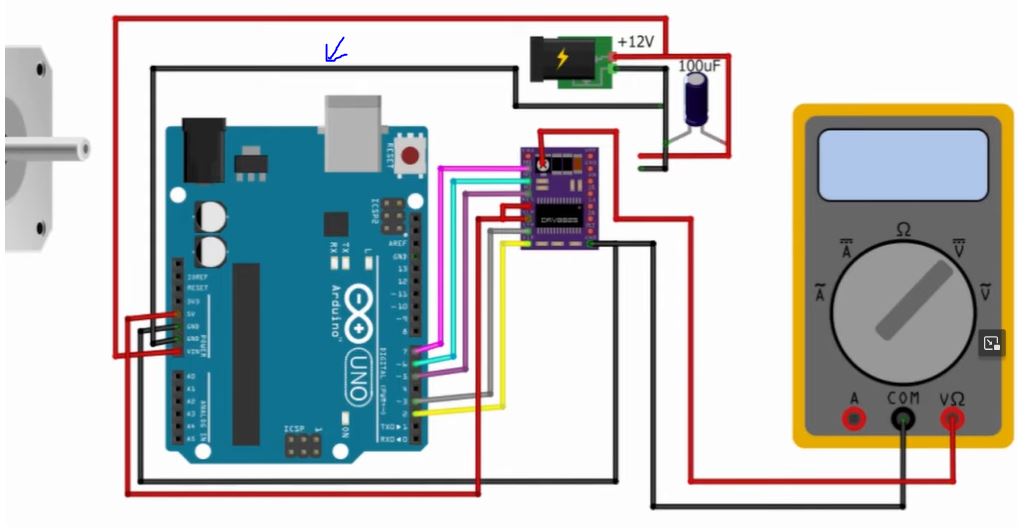 Nemopuk schrieb: > Dein "Schaltplan" wirft allerdings Fragen auf. > > 1) Ist das eine Türklinke? > 2) Soll das Multimeter wirklich in die Schraube des Trimmpotis gesteckt > werden? > 3) Hier hängen zwei Leitungen in der Luft! Hi Nemopuk, 1) nein, das ist ein NEMA17-Steppermotor. Ich will mit einem Stepper-Treiber (DRV8825) und einem Arduino einen Antrieb mit Steppermotor und Zahnriemen basteln. Meine Terassenschiebetür hat ein verschiebbares Insektenschutzgitter. Dieses will ich automatisieren mit Näherungssensor betreiben, wie eine automatische Kaufhaus-Schiebetür. 2) Ja, so zeigt es der Youtuber im verlinkten Video. So stellt man die Strombegrenzung des DRV8825 mit dem Poti ein, bevor man den Steppermotor betreibt. 3) Das ist die Spannungsversorgung des Steppermotor-Treibers, die laut des Youtubers erst kontaktiert wird, wenn die Strombegrenzung eingestellt ist.