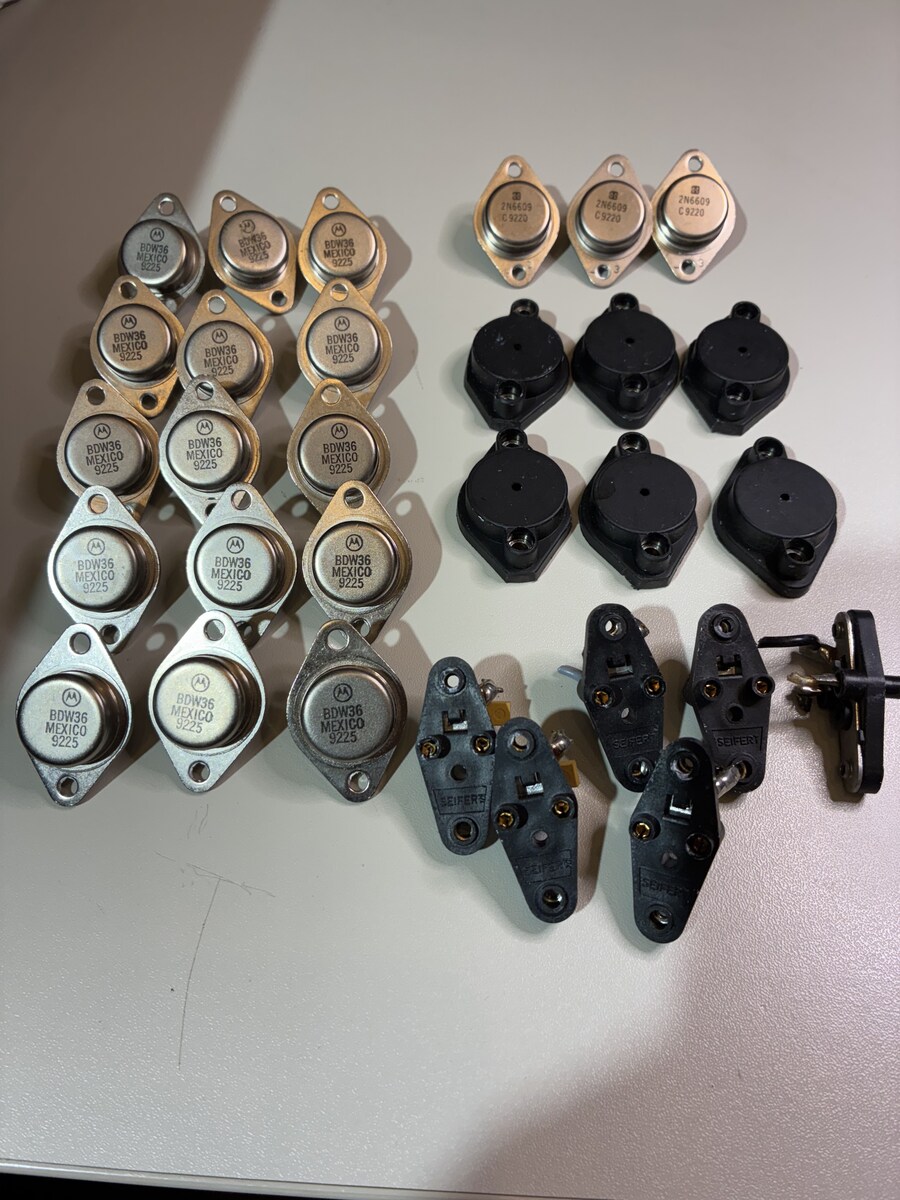 Hallo zusammen. Verkaufe Konvolut von Transistoren. Inclusive Fassungen. Die Transistoren sind in Ordnung. Alles zusammen für 10 Euro.