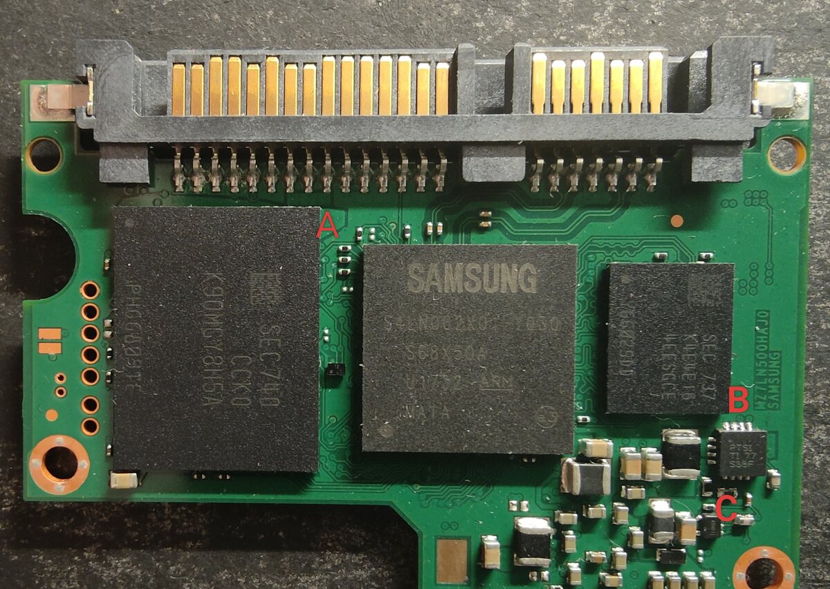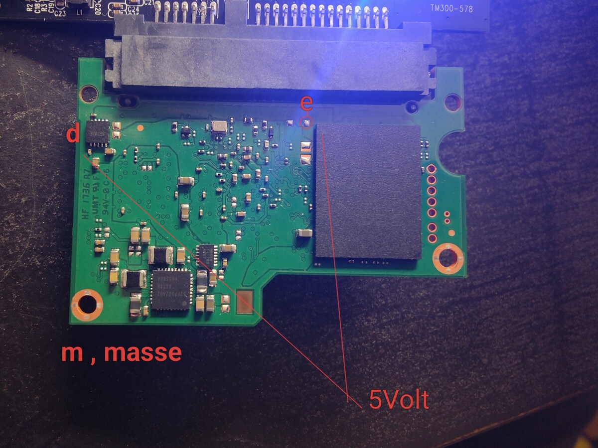 Gerät: Evo 850 500 GB Model: Mz-75e500 217.10 MSIP-REM-SEC-MZ-75E500 Hallo! Kurz und knapp: Meine SSD wurde beschädigt, als eine andere Festplatte am selben Kabelbaum aus Versehen von der Stromversorgung abgezogen wurde (Kurzschluss) Ich kenne mich wenig aus und hatte die Hoffnung eine eFuse zu finden, oder eventuell TVS Dioden, die ich "überbrücken/auslöten" muss. In meiner Umgebung habe ich kein Repair-Cafe / Werkstatt gefunden, die mir beim Messen helfen könnte, oder beim Testen. Zusammenfassung: Ich habe nur an den Messpunkten e und d Spannung messen können: Das Bauteil in B ( zwischen MArkierung B und C) soll, ggf. eine eFuse sein, ( StefS4s) Allerdings liegt weder über, noch unter dem Bauteil Spannung an. Eine Frage: Kann ich von 5+ Pin auf das Bauteil B ( ersten beiden PINS) Spannung legen ? Oder kennt jemand das Bauteil und kann mir da weitere Tipps geben ? Laut Messgerät kann ich beim Bauteil von oben nach unten durchmessen (Piepen) Habe nur eine Evo260 hier, die allerdings andere Bauteile verbaut hat. Ich kenne mich, wie man vermutlich erahnt, wenig aus, daher werde ich nicht jedes Bauteil erkennen können, bin mir auch unsicher, welches genau die TVS Dioden sind, sofern es die gibt ;) Hier meine bisherigen Versuche und Messprotokolle Ausgangslage: Vorfall: Kurzschluss durch andere HDD am gleichen Kabelstrang, SATA-Anschluss der HDD abgerissen Seitdem: SSD wird im BIOS und unter Windows/Linux nicht erkannt Andere PCs und verschiedene SATA-zu-USB-Adapter getestet, keine Erkennung Am USB liegen 5 V an, auf dem Board bis Messpunkt e nachverfolgbar Chips werden auch bei längerem Anschluss nicht warm, nur per IR-Thermometer/Laser geprüft Messpunkte und Ergebnisse: Referenzmasse: Schraubloch P7–P9 SATA-Power: 5,0 V Rückseite d oben und unten: 5,0 V Rückseite e: 5,0 V Vorderseite im Bereich der vermuteten eFuse: auf einer Seite Spannung 0 V, auf der anderen Seite 0 V, ich bin nicht sicher, ob ich VIN oder VOUT treffe Unklar, ob das 8-Pin-Bauteil zwischen B und C tatsächlich eine eFuse ist, vermutet STEF5S oder ähnlich, Kennzeichnung unklar Bisherige Interpretation: 5 V liegen bis d/e an, danach offenbar Unterbrechung Richtung eFuse-VIN oder zwischen eFuse-VIN und eFuse selbst Möglich: offener 0-Ω-Link oder Ferrit im 5-V-Pfad zur eFuse, alternativ Via-Riss Fragen an das Board: Ist das 8-Pin-Bauteil zwischen B und C auf dieser 850-EVO-Revision tatsächlich die 5-V-eFuse bzw. ein kompatibler High-Side-Switch, oder ist es ein anderes Power-Bauteil Darf ich für einen kurzen Diagnose-Test die 5 V von SATA P7–P9 direkt an Bauteil B oder einen eindeutig identifizierten VIN-Knoten der eFuse legen, alternativ +5 V an den VOUT-Kondensator einspeisen, jeweils nur mit Labornetzteil 5,00 V und Stromlimit 0,25–0,5 A Wo liegt auf dieser PCB-Revision zuverlässig der 2-Pin-Serienlink im 5-V-Pfad vor der eFuse, falls vorhanden, damit ich ihn messen bzw. temporär überbrücken kann