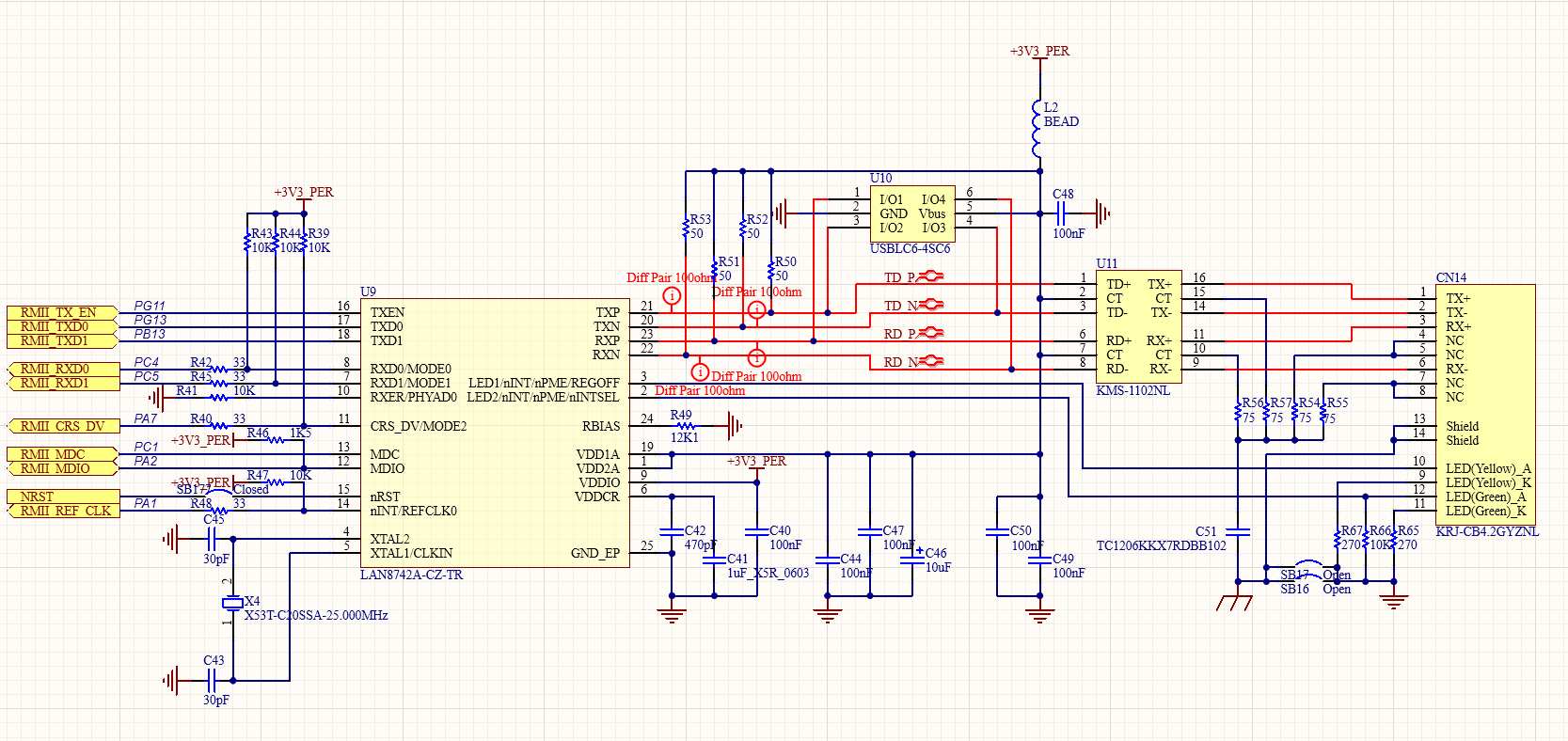 Gerd E. schrieb: > Z.B. RC- oder MEMS-Oszillatoren sind keine gute Idee, es sollten echte > Quarze sein. Und dort müssen dann auch Impedanz und Kondensatoren > passen. Danke, habe ich dem Kunden auch schon so weitergegeben. Könnte tatsächlich ein Problem sein, sehr schwierig hier zu analysieren, da wahrscheinlich noch anderes nicht stimmt. Peter G. schrieb: > das Exposed Pad ist verlötet? Auch nicht den LAN8742 um 90° verdreht? > Kann ja mal passieren 😃 Hoffe doch schwer, zumindest ist es exponiert und SMD gelötet. Der Chip ist sicher richtig aligned, sonst würde die REFCLK kein Signal ausgeben.