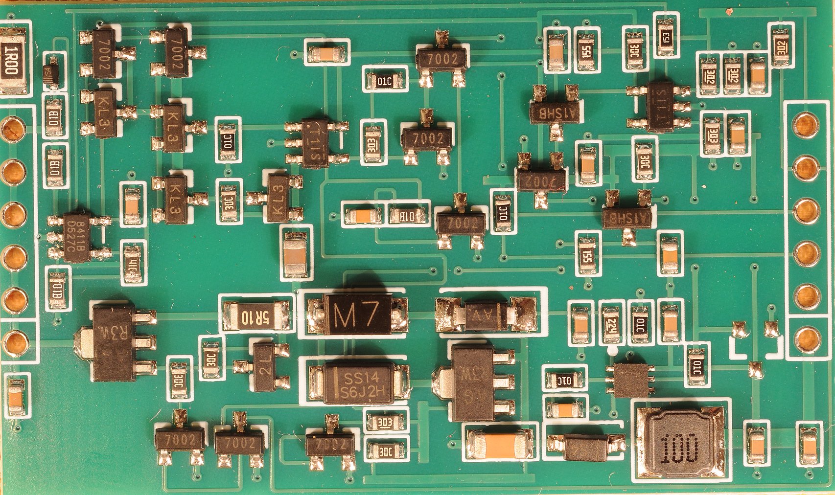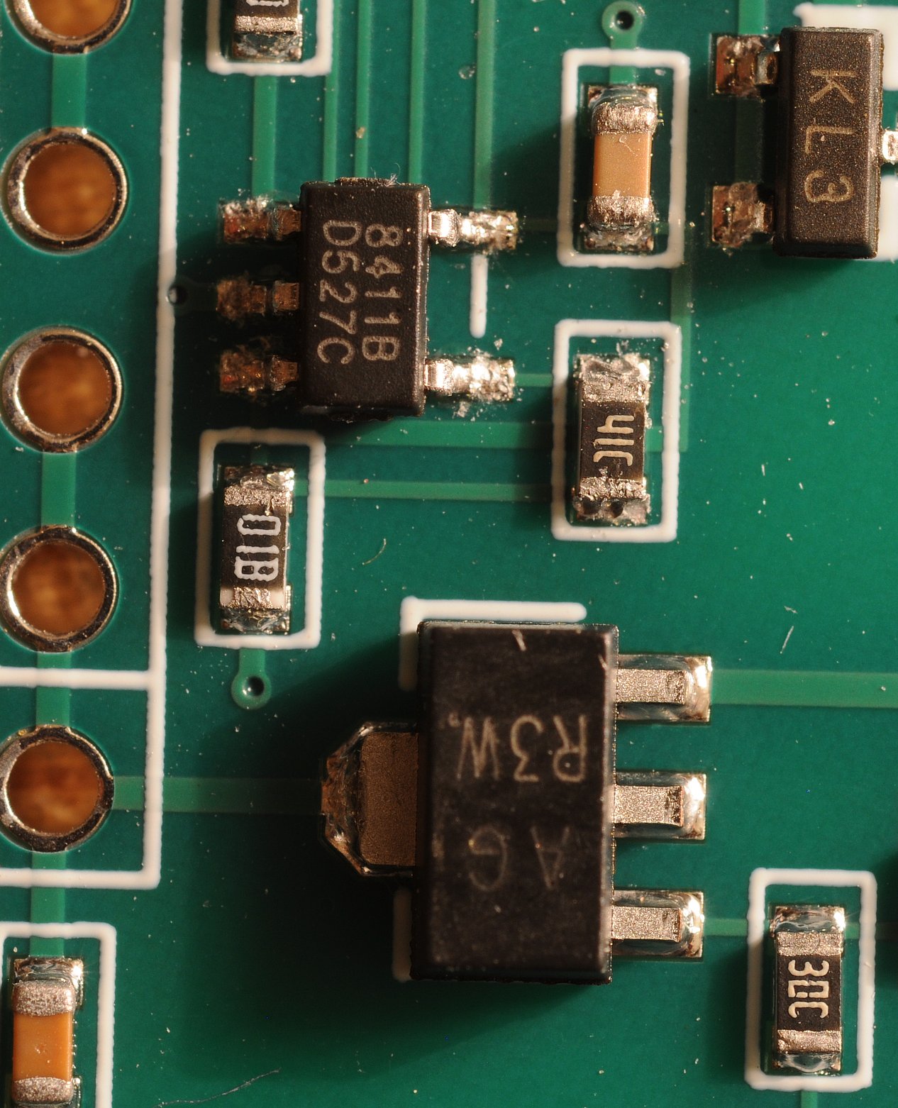 Liebe Leute, ich habe hier ein Mbus-Master-Board von Aliexpress (https://de.aliexpress.com/item/1005006030830638.html) ohne Schaltplan, und versuche die Schaltung zu verstehen. Dabei gelingt es mir nicht auf Anhieb, drei Bauteile zu identifizieren. Zum einen wäre da ein SOT89-Bauteil mit den Aufschriften "AG" und darunter "R3W.". Zum zweiten ein DFN in 2mm x 2mm Größe mit sichtbar je 3 Anschlüssen pro Seite und den Aufschriften "R17" und darunter "T2HV" und darunter ".". Angesichts des Umfelds könnte das u.U. ein Boost-Schaltregler sein. Und schließlich ein SOT23-5 mit den Aufschriften "8411B" und darunter "D527C". Könnt ihr helfen, die zu identifizieren? Anbei ein Übersichtsfoto plus zwei Detailfotos der gesuchten Bauteile. LG, Sebastian