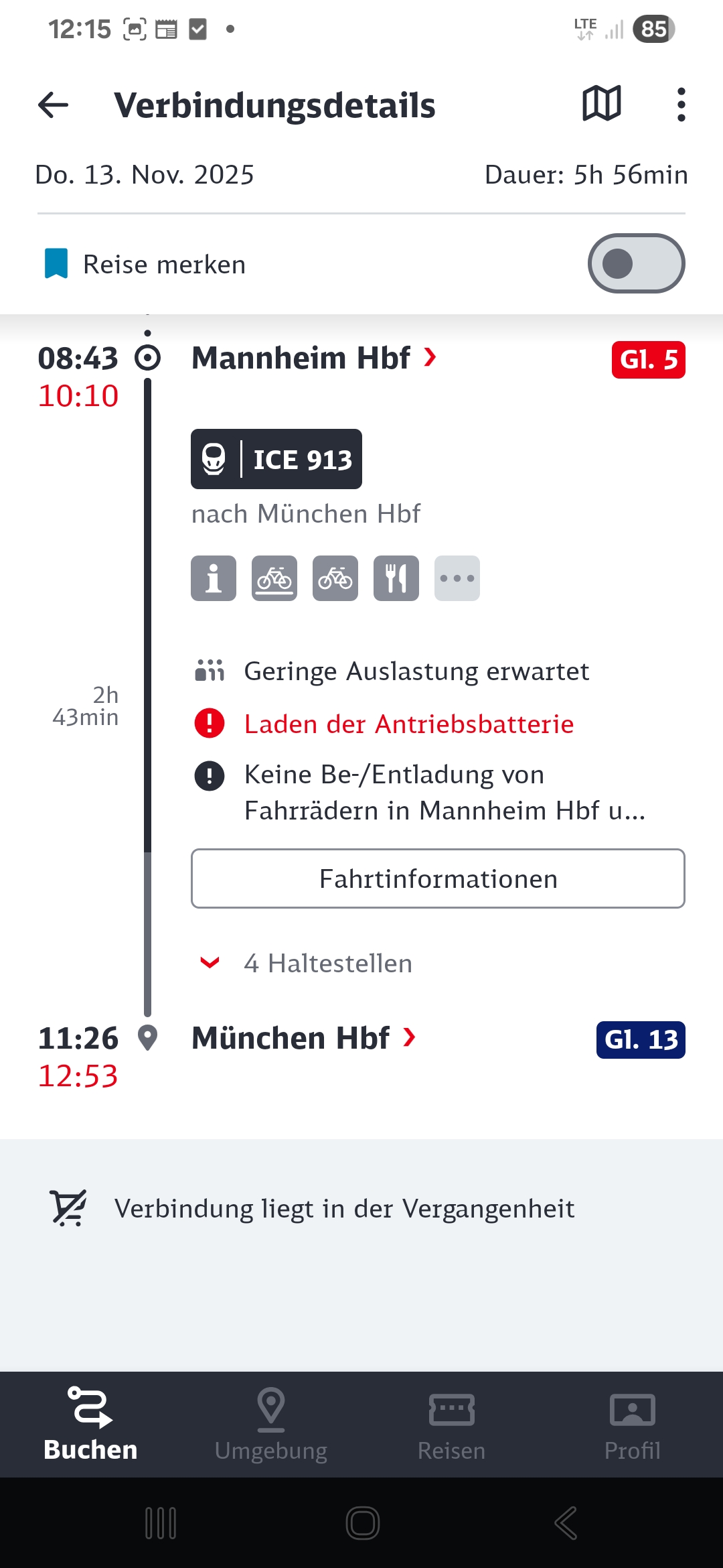 Seit wann faehrt die Bahn mit diesen ICE? Laden der Antriebsbatterie, siehe Bild. Habe extra nachgeschaut, ob nicht Do der 12. nach Rheinhard Mays Lied Freitag der 13. ist.