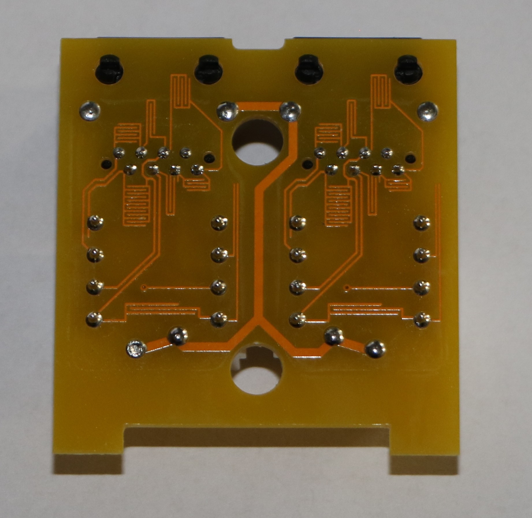 Geätzte Koppelkondensatoren. Das spart Bauteile. Die Trägerplatine wird ja sowieso benötigt.