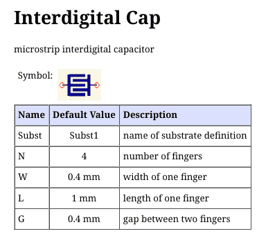 In Qucs gibt es ein Modell dieses "Bauteils", ein interdigitaler Kondensator.