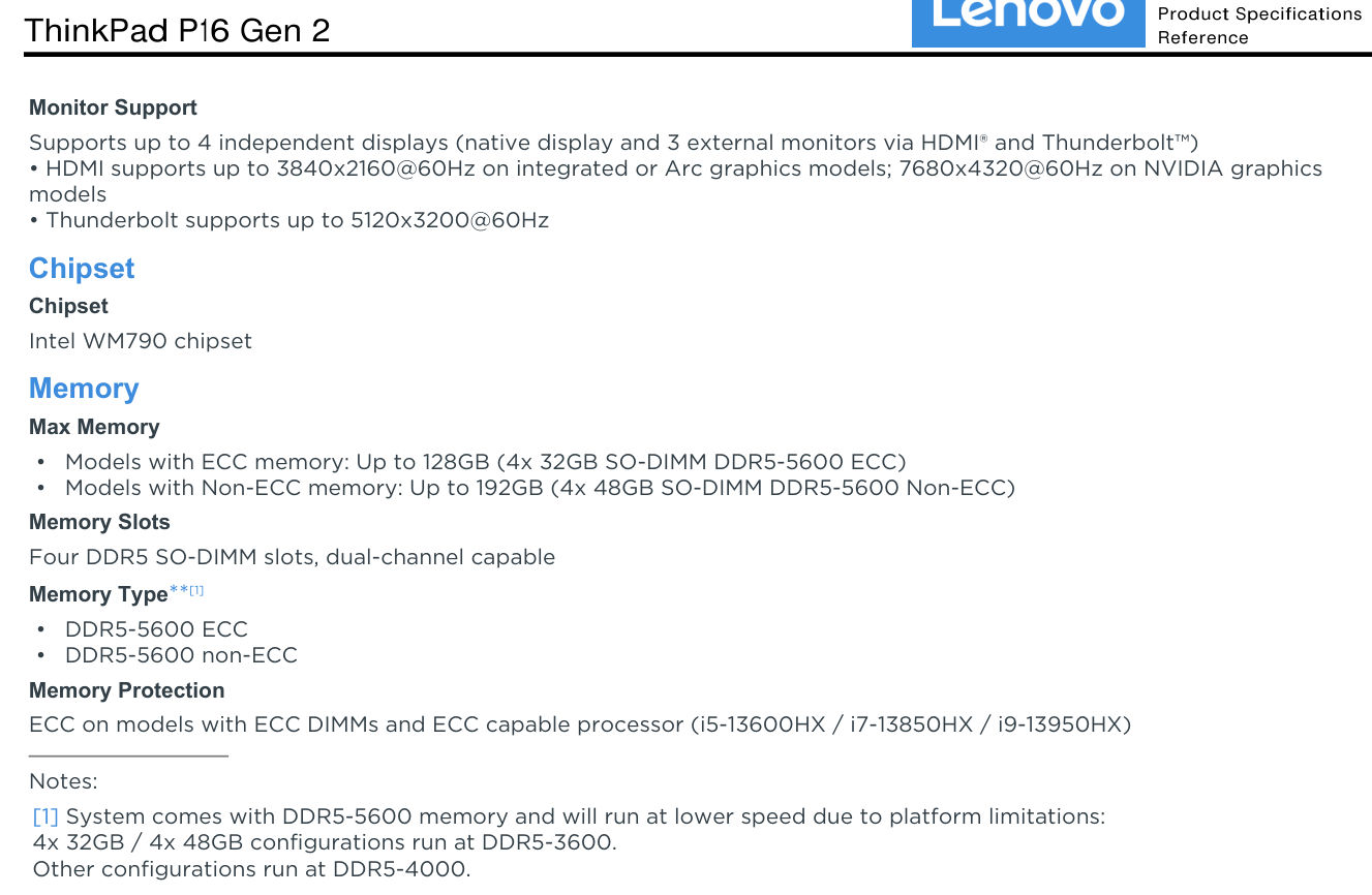 Das P16-G2 unterstützt doch bis zu 196GB (4x48GB). Die 128GB, wie in