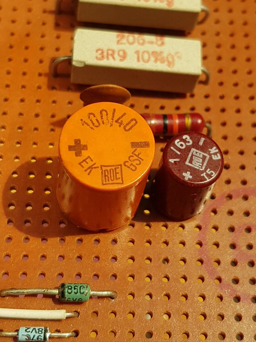 > Ich war etwas faul und habe den Stromlaufplan meinem neuen Feund > hochgeladen > der macht mir auch gleich eine Liste für Reichelt. In der Liste sollte man aber mal die Bauform vergleichen, die ist m.E. nicht aus dem Stromlaufplan ersichtlich, eher aus einem Platinen-foto wie : https://www.radiomuseum.org/images/radio/fernmeldewerk/pa2040_493178.jpg Nicht das die Elkos dann zu kurze Anschlüße haben oder vom Typ "stehend" sind. Hat man die Platinen (Plural (ist der Trafo mit Glättung/Gleichrichtung abgesetzt?)) ausgebaut, sollte der Bauteil-Wechsel bei der Durchsteckmontage nicht sonderlich schwierig sein, die Kupferbahnen scheinen einiges "Rumbraten" ab zu können. > Ich habe ihn nach den Pflichttausch gefragt. Das mit dem prophylaktischen "Pflichttausch" macht man eher bei boards aus anderen Zeiten: * https://de.wikipedia.org/wiki/Capacitor_Plague * Beitrag "Wie defekte Elkos erkennen? Oder prophylaktisch tauschen?" Ob der pauschale Elko-Tausch hier zum Erfolg führt, kannst du ja in einem späteren Post mitteilen.