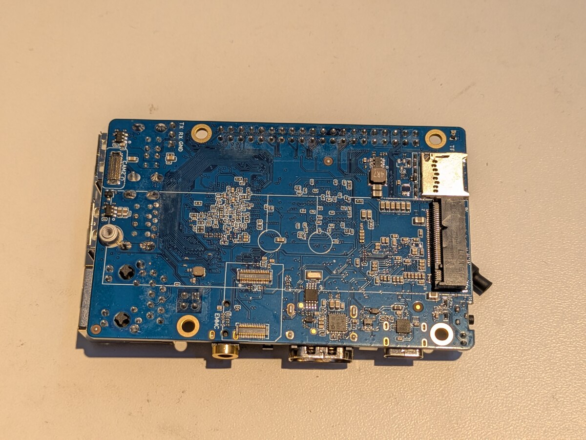 Auf der Unterseite finden sich Slots für M2- bzw. die eMMC-Speichermedien. Insbesondere wer seinen Prozessrechner in vibrationsempfindlichen Gefilden einzusetzen pflegt, profitiert von diesen Möglichkeiten der Speicherbereitstellung. Schade ist lediglich, dass der microSD-Slot beim Orange Pi 4A auf dem Reibschlussverfahren basiert.