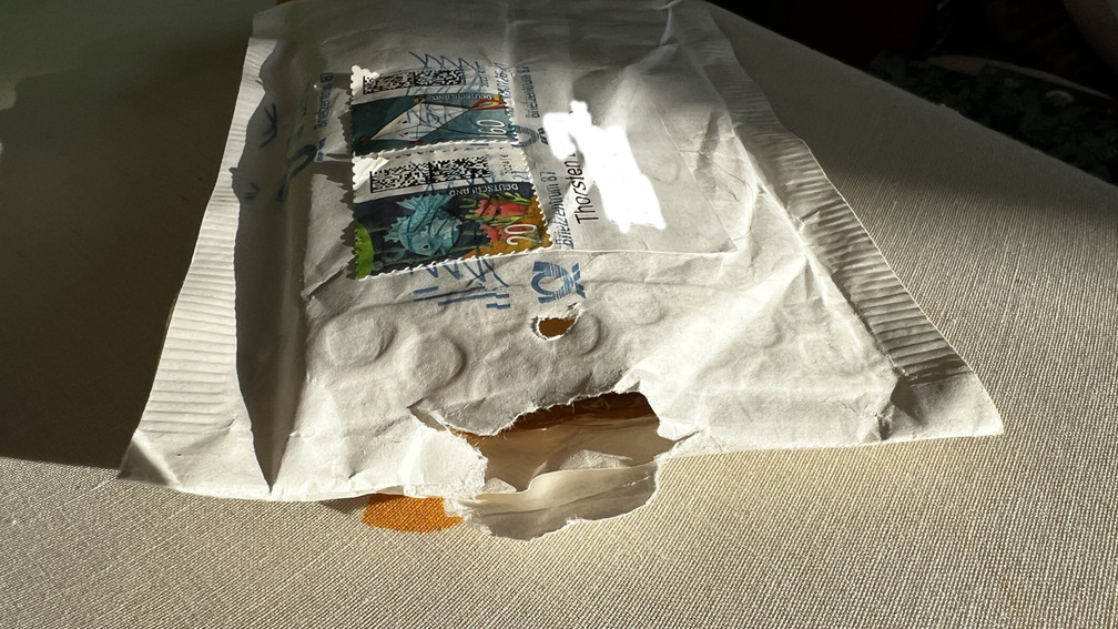 Hallo Uli, das war leider nichts. Sendung kam heute an (kein Absender drauf, vermute aber, dass die von dir kommt) mit aufgerissenem Umschlag (Bild 1) und ohne Inhalt (Bild 2). Kann man nur spekulieren, was da wieder passiert ist. Vermutung: die Magnete sind unterwegs doch irgendwo hängengeblieben und die Post hat die Sendung geöffnet? Keine Ahnung:) Gruß Thorsten