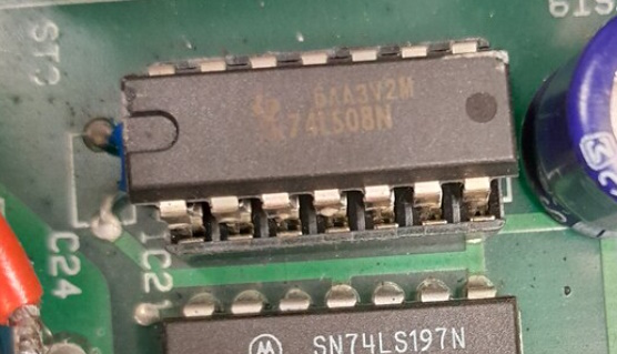 OK, das ist aber eine 6502, der CRT-Controller ist der 6545. Ich wuerde an Pin 39 und 40 das HSYNC und VSYNC Signal angucken (beim 6545), Masse bei Pin 1 (https://www.princeton.edu/~mae412/HANDOUTS/Datasheets/6545.pdf). Der 6845 ist pin- und SW-kompatibel zum 6545, Doku umd Beispiele fuer den 6845 gibt es mehr als genug. Wenn das "vernuenftig" aussieht, suche nach einem Shift-Register auf der Platine (74LS165, IC22) -> Gucke Pin#2 (Clock), am Pin 9 (Q_H) kommen die Bits fuer das Bild raus. Aber ich wuerde eher (weil die Maschine ja noch lebt) in das Display (das mit dem gebrochenen Rahmen) gucken: HV ist da. Gucke mal, ob ein z.B. TDA1170 verbaut wurde (Standard-IC fuer die vertikale Ablenkung aus der Pre-Disco-Zeit). Ich wuerde davon ausgehen, dass das Display ein Problem hat (und die Maschine komplett in OK ist). Gucke ob Kondensatoren den Deckel aufgemacht haben oder, ob bei der strukturellen Verformung des Rahmens da vielleicht etwas kaputt gegangen ist.