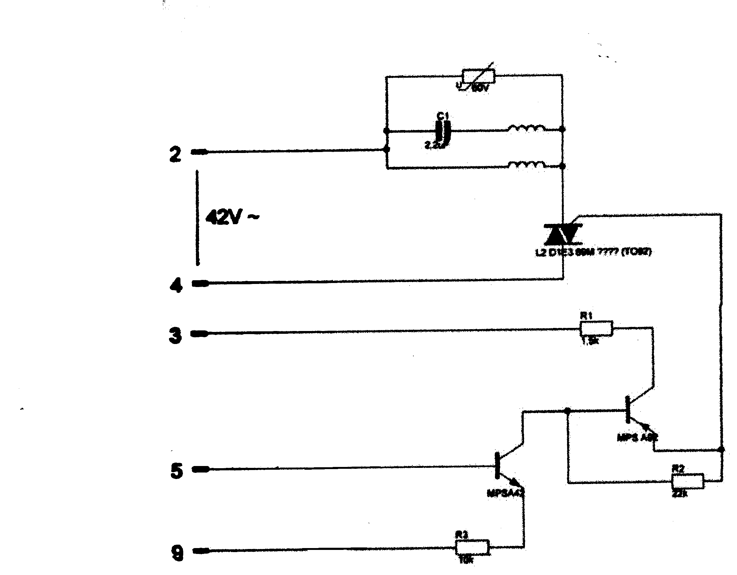Hallo zusammen, wer kann mir bei dem (historischen) Schaltplan helfen. Es handelt sich um den TRIAC L201E3, bei der Induktivität um einen (Synchron?)-Motor. Meine Ideen: - PIN 2 und 4: 42 V AC Motorversorgung - PIN 3: vermutlich 12 V Versorgungsspannung - PIN 5: vermutlich 5V Motor an/aus - PIN 9: vermutlich GND Kann das stimmen? Alternative Ideen? Viele Grüße und vielen Dank Martin