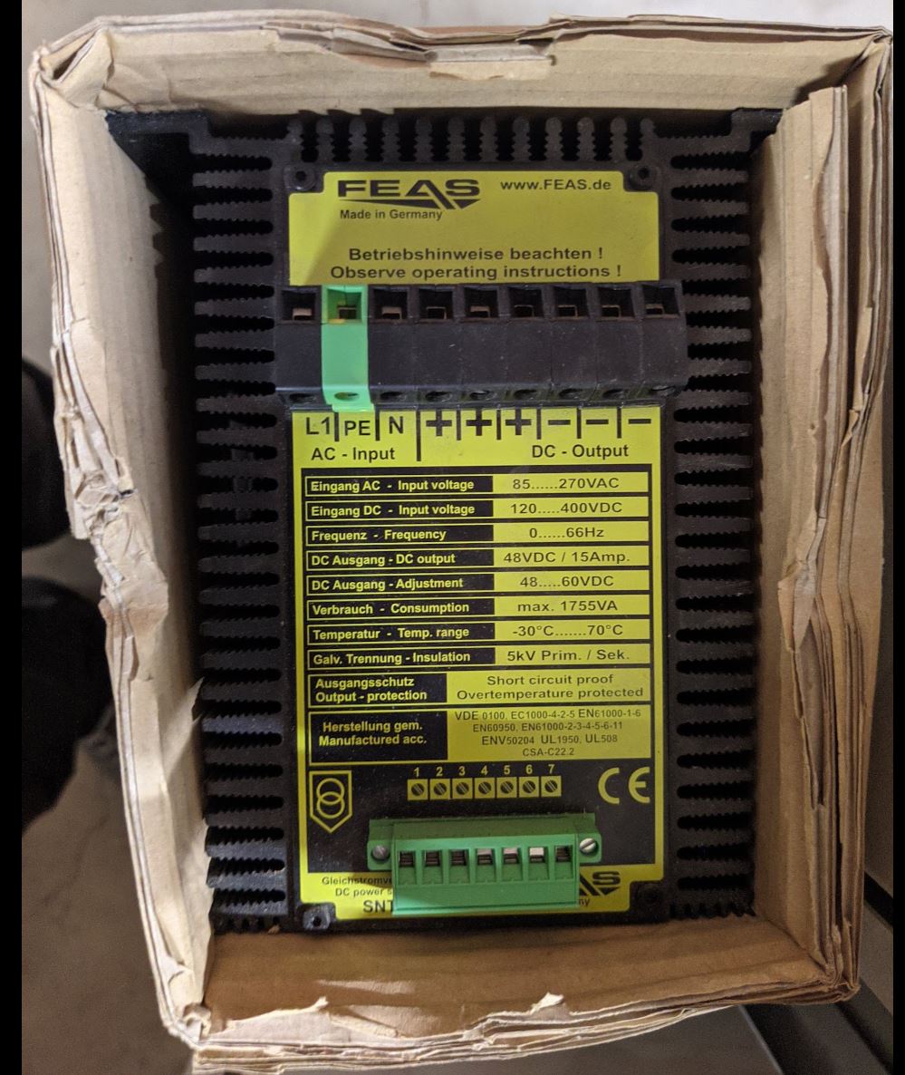 Bei dem angebotenen Netzteil handelt es sich offenbar um eine aktuelles Produkt, welches derzeit für 1.326,90 EUR über den Ladentisch geht. https://www.feas.de/netzteile/ausgang-48-vdc/schaltnetzteile/eingang-85-270-vac/schaltnetzteil-snt13048 Die beiden wesentlichen Punkte, die die massive Ausführung und den hohen Preis erklären, sind dort auch aufgeführt: - Tropentauglich durch Gießharzvollverguss - Rüttelfest Dennoch liegen die aufgerufenen 800 EUR in genau dem Bereich, der für kaum jemanden interessant sein dürfte. Für ein Bastelobjekt ist das Teil zu teuer. Für einen gewerblichen Kunden ist der Preisabstand zu Listenpreis zu gering, um dafür das Risiko bei einem Kauf von einer unbekannten Quelle einzugehen, insbesondere weil auch kein Vorsteuerabzug möglich wäre und Rechnungen von Privatleuten ggf. vom Finanzamt kritisch betrachtet werden. Und falls das Teil doch mal ausfallen und sich die Frage nach dem Lieferanten stellen sollte: "Ähem, das Teil hat Christoph, den wir auch nur flüchtig aus einem dubiosen Internetforum kennen, irgendwo aus einem Restbestand abgestaubt."