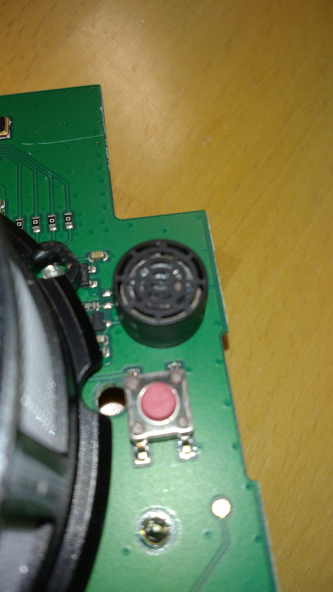 Könnt ihr mir sagen, was das für ein Bauteil (neben dem Taster) ist ? Zwei Anschlüsse ca 300 Ohm bei Widerstandsmessung. Es handelt sich um die Platine eines Funkrauchmelders von Brunata Metrona.