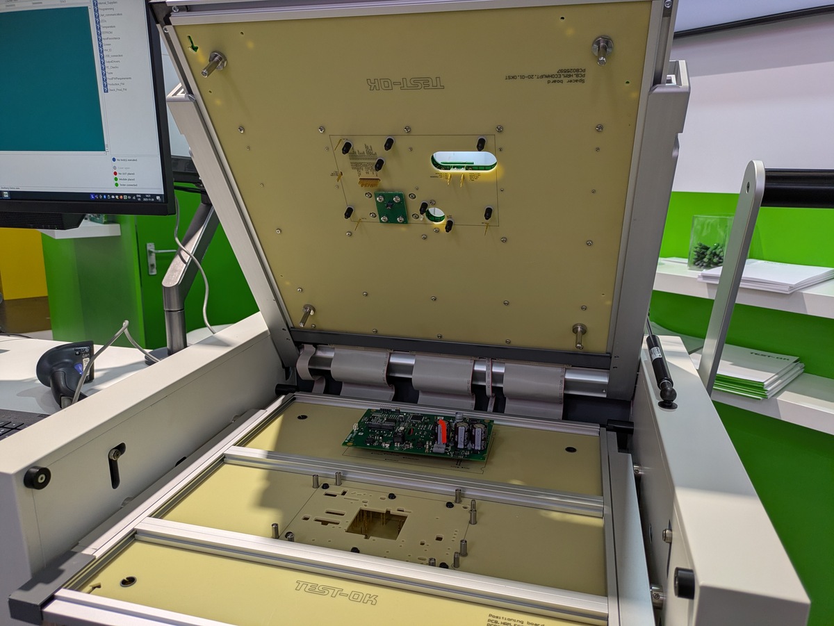 Obwohl fast zwei Hallen der Productronica voller Messtechnik waren, gibt es im Bereich der Elektronik vieles mehr zu sehen. Die Bandbreite reicht vom Laser-Markierungssystem über die Lötstation mit QR-Code-Scanner bis zum selektiven Wellenlöten.