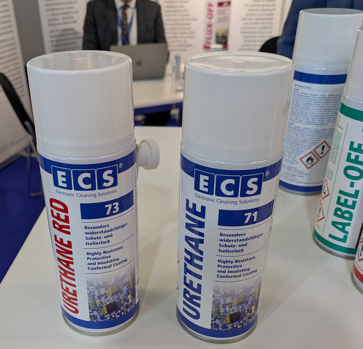 Im Hause ECS - das Unternehmen bietet Sprühdosen mit den verschiedensten für die Elektronik hilfreichen Chemikalien an - steht ein neuer Schutzlack zur Verfügung. Er präsentiert sich wie in der folgenden Abbildung gezeigt.