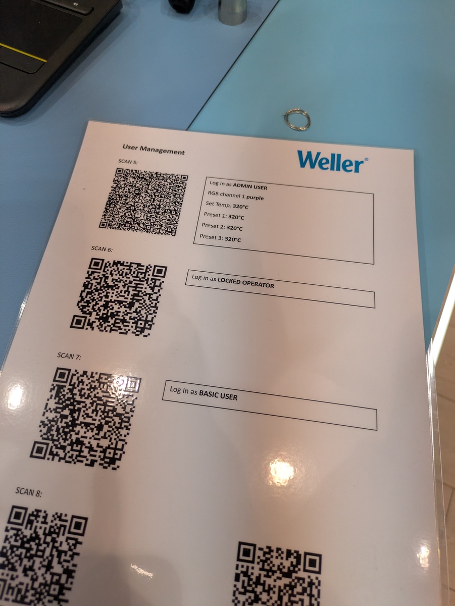 Im Bereich der Handlötstationen setzt man dann vor allem auf Tracebility. Sehr nett ist außerdem die Möglichkeit, verschiedenste Parameter in Form von QR-Codes anzubieten - der P. T. Operator kann diese dann mit einem Scanner einlesen, was eine reproduzierbare Parametrisierung der Workstation sicherstellt.
