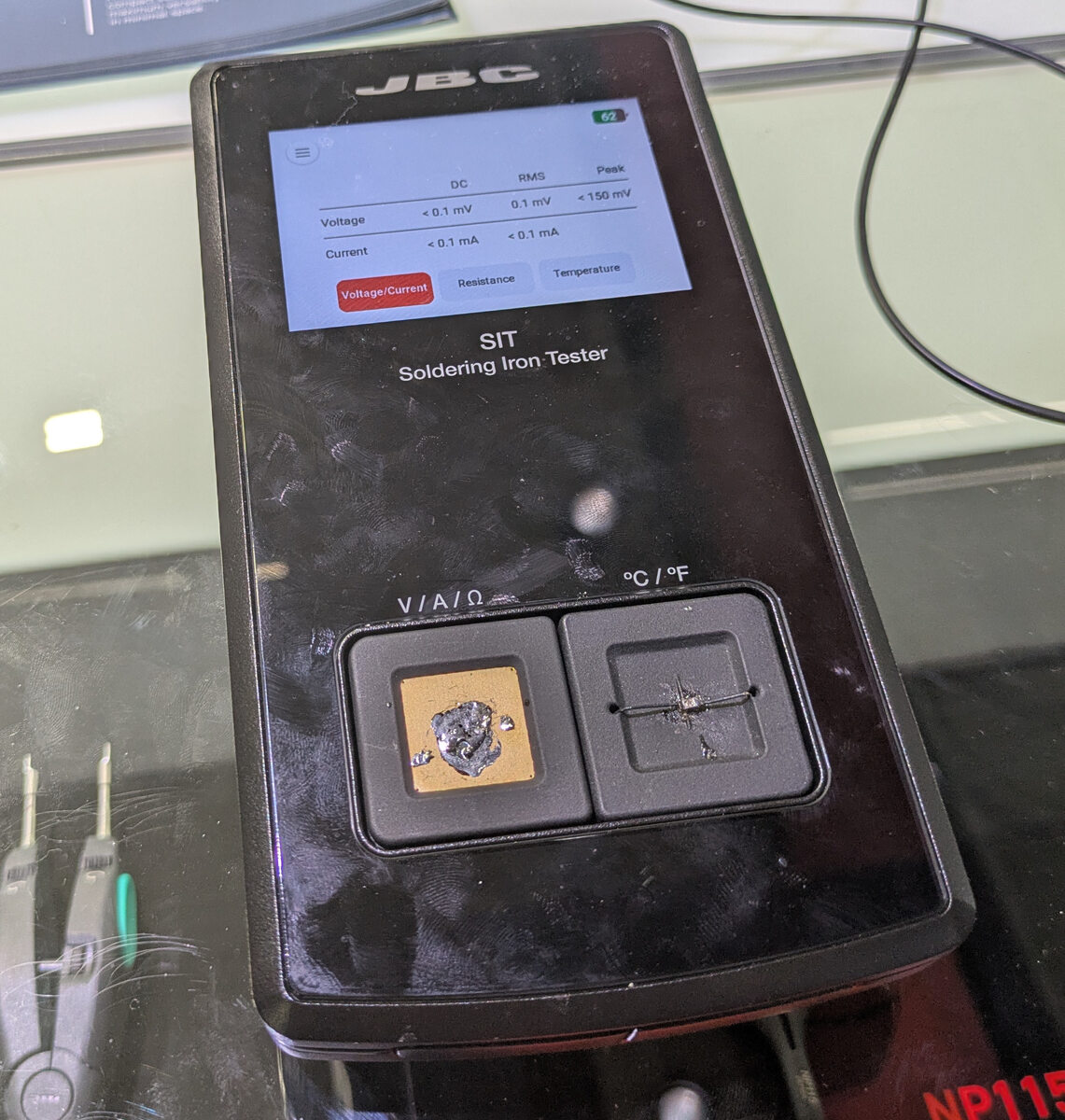 Auch Hause JBC ist man nicht faul: Neben einem Wechselrahmen zeigt man außerdem einen Lötspitzen-Tester, der verschiedenste Parameter automatisiert überprüft.