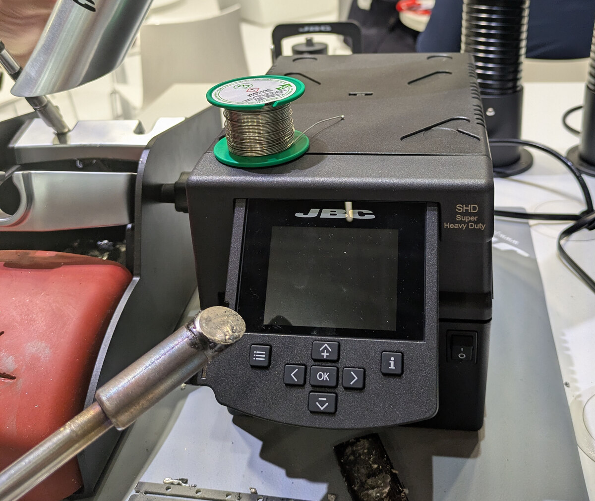 Außerdem steht eine neue Lötstation zur Verfügung, die man unwissenschaftlich als dicke Berta bezeichnen könnte - sie ist für Situationen vorgesehen, in denen „immenser Energie-Eintrag” erforderlich ist.