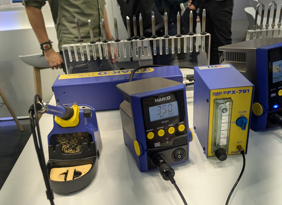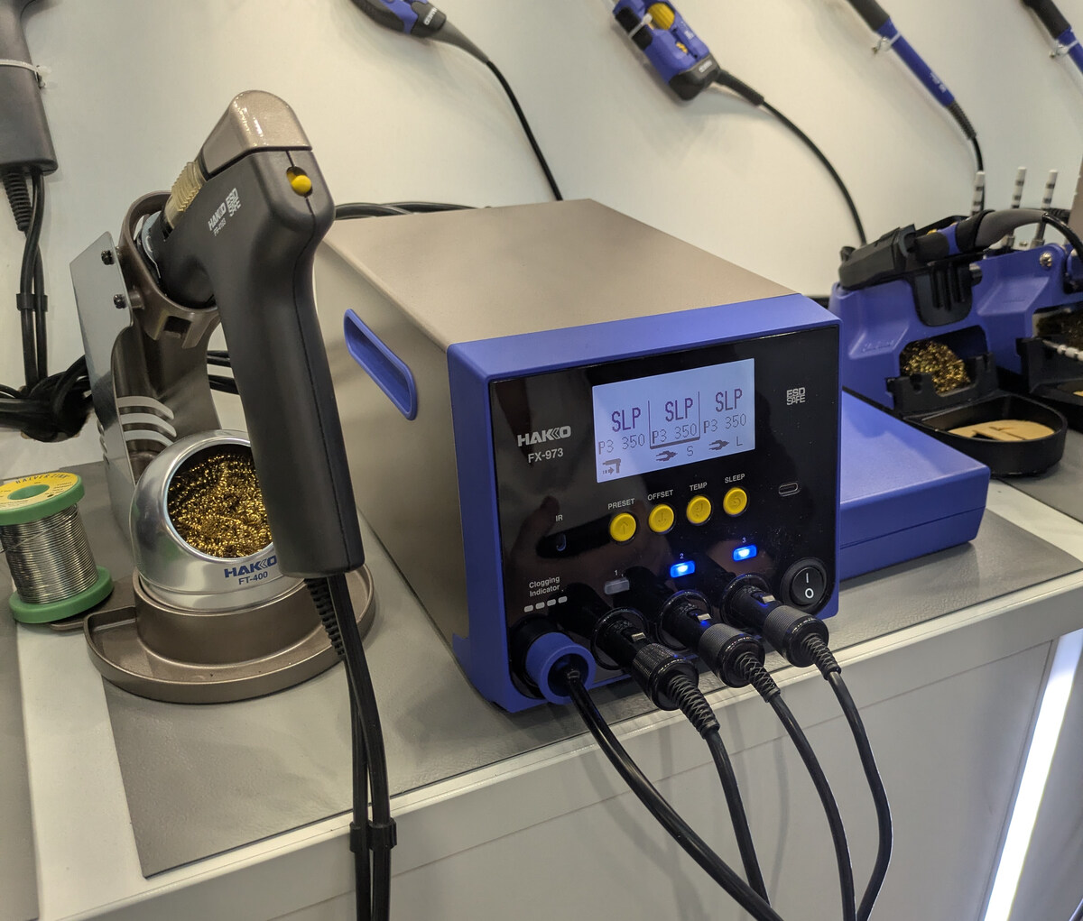 Hakko verdient ebenfalls Aufmerksamkeit - es steht eine neue Serie von Lötstationen zur Verfügung, die entweder einen, zwei oder drei Werkzeuge gleichzeitig bespielen können. Zu beachten ist, dass die Vakuum-Funktion nur in der drei-Ausgangsvariante zur Verfügung steht.