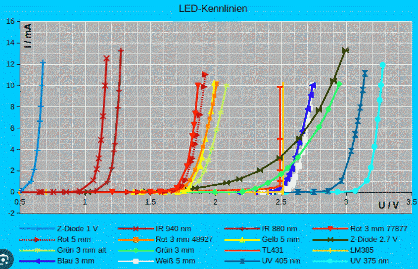 > b) der Ausfall nicht "die wird immer dunkler im > Sommer, im Winter dagegen heller" war, sondern "die tut auf einmal gar > nicht mehr, oh warte, jetzt doch wieder". Deshalb der Verweis auf die Dioden-Flussspannung unterhalb der nichts glimmt. Merke: Eine LED leuchtet nicht wie ne Glühbirne. https://de.wikipedia.org/wiki/Schwellenspannung Hab mal ein Diagramm angehangen, kann man auch gerne bei einem kleinen experiment mit einen einstellbaren Labornetzteil nachstellen.