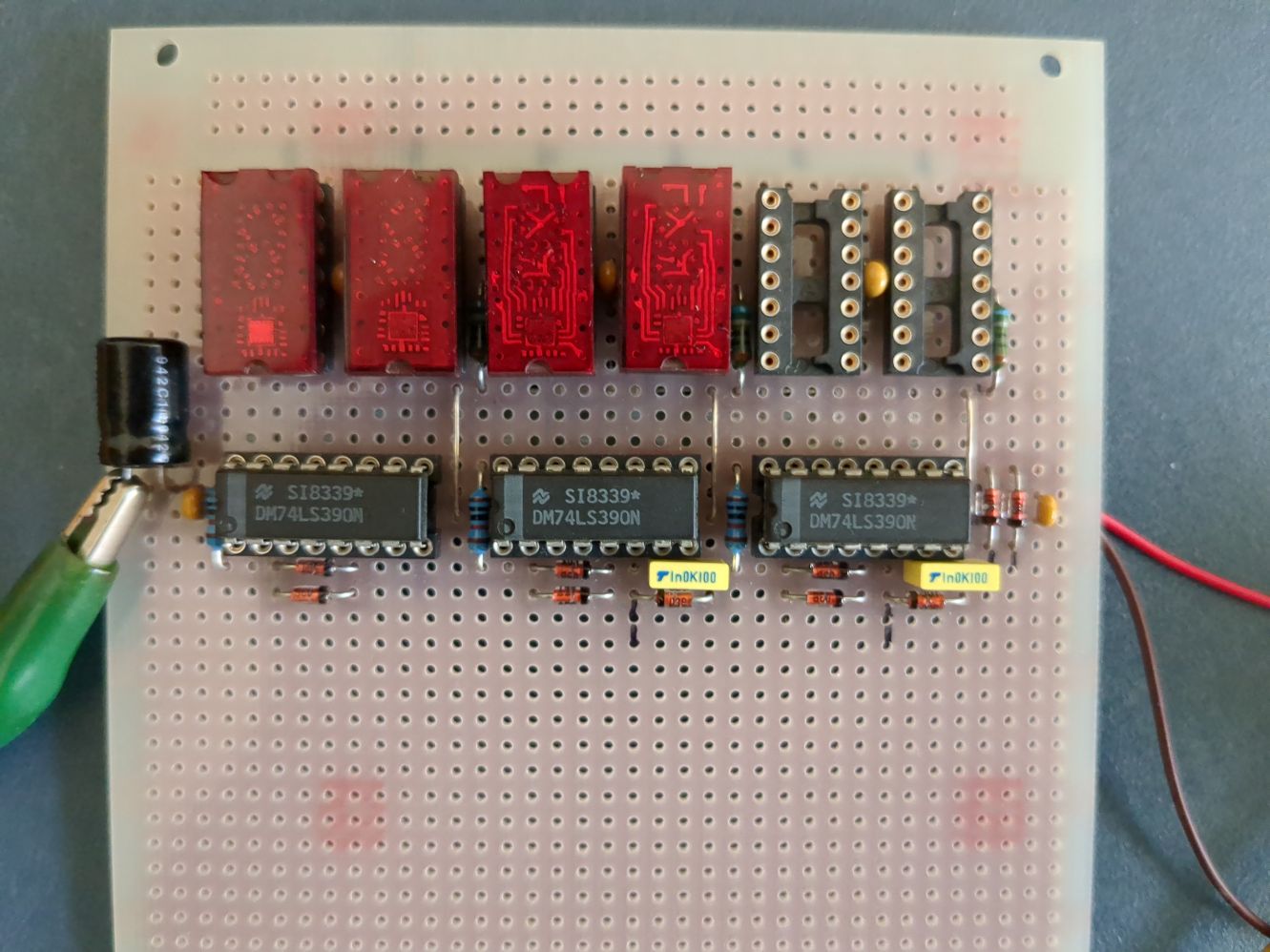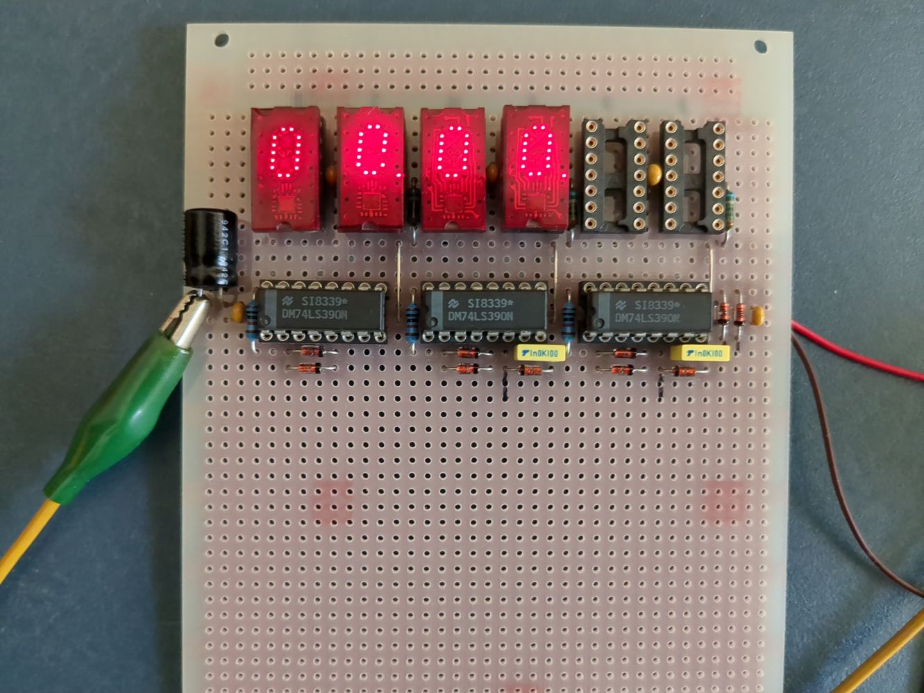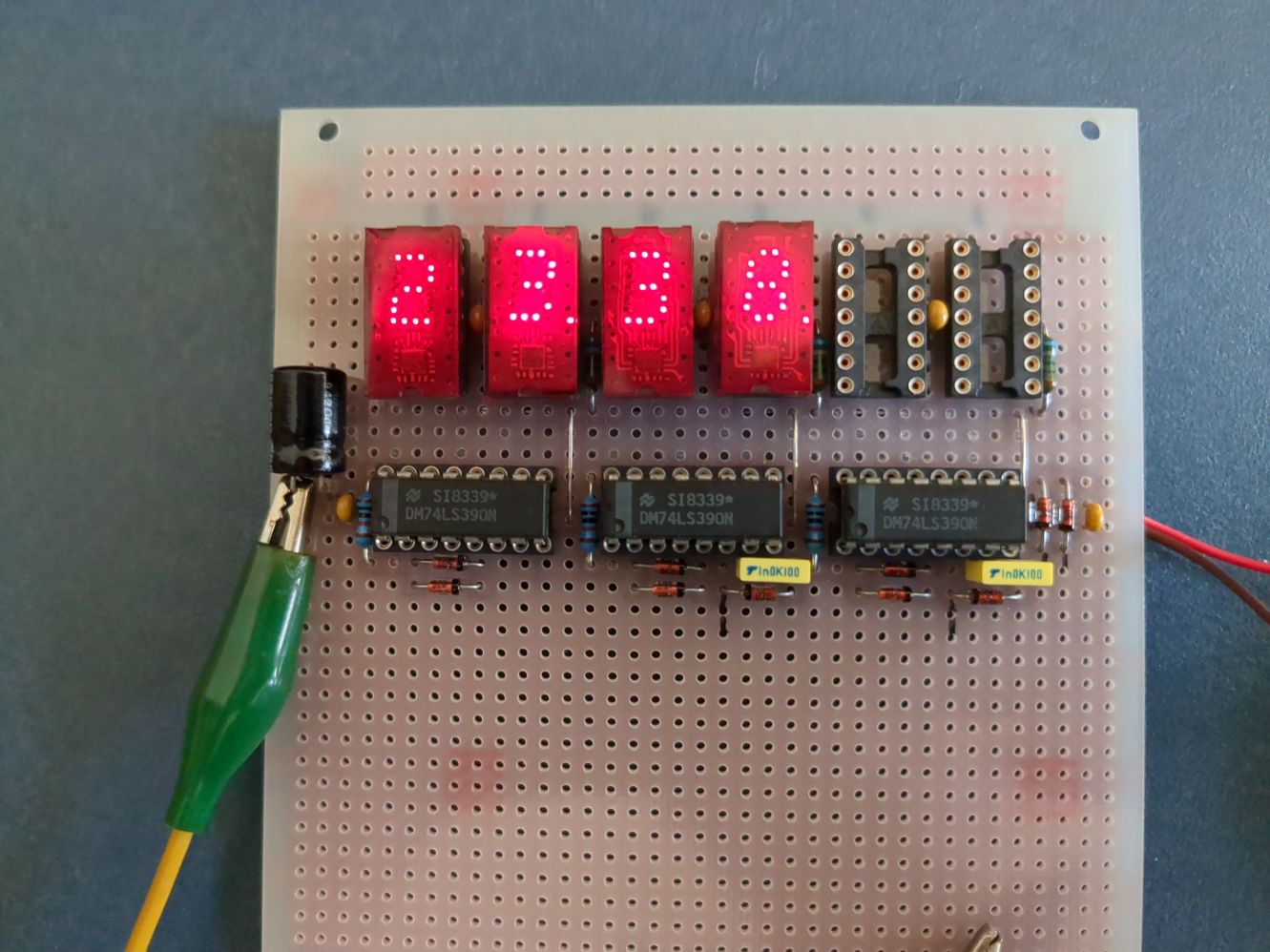 Hallo, ich habe eine abgebrochene Bastellei abzugeben. Das sollte eine sechsstellige Uhr werden. Leider waren zwei meiner TIL311 defekt. Da hab ich die Lust verloren. Bei der Anzeige 23:38 sieht man, daß eine LED der "3" defekt ist. Schaltplan gäbe es auch. VB 20,- € incl. Versand Danke für's lesen