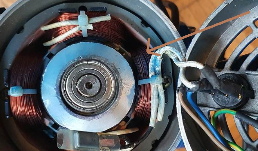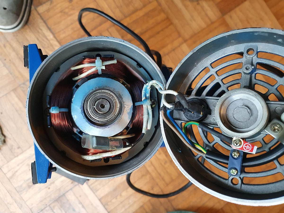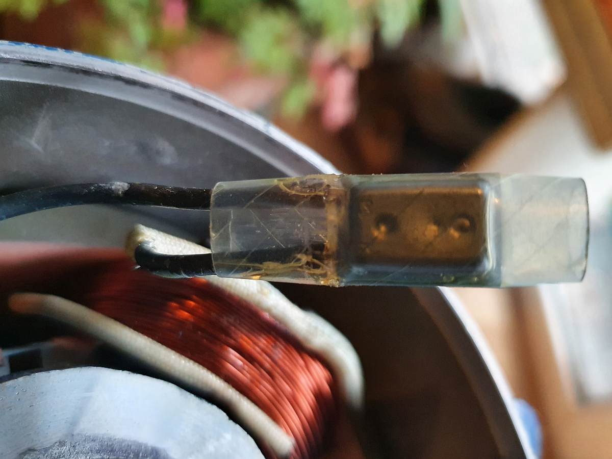 Falls ich die braune Wicklungsfarbe richtig erkennen sollte, hat der Motor mächtig geschwitzt. Anschließend hat die Thermosicherung gemeldet, dass der Weg zum Wertstoffhof nicht weit ist. Wicklung mal genauer prüfen.