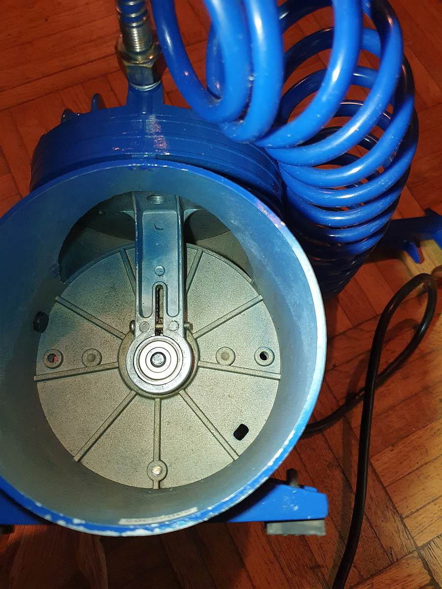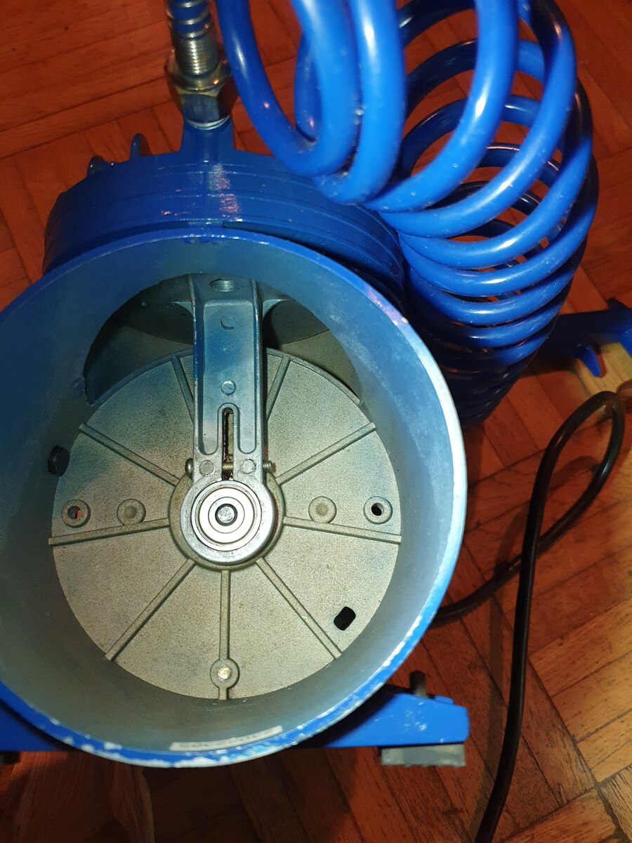 Oh wow, so viel geballtes Fachwissen... Kann ich leider nicht mithalten, also ich dachte 4-polig, weil ich vier Wicklungen erkennen konnte, aber das war dann wohl ein Kalter. Die Wicklungen sehen eigentlich noch gut aus, die dunkle Verfärbung ist eher die Sprühfarbe, mit der das Kompressorgehäuse gefinisht wurde, ist wohl etwas durch die Lüftungsschlitze reingenebelt. Um das nochmal zu präzisieren: Es handelt sich um einen ganz einfachen Membrankompressor ohne Druckkessel für Airbrush-Arbeiten. Also wenn ich den Membrandeckel löse, läuft der Motor relativ normal an (weiß nicht genau, wie der sich "normal" anhören müsste, macht aber einen korrekten Eindruck). Sowie ich die Deckelschrauben anziehe, hört er sich etwas gequält an, pumpt aber Luft, wenn ich die Luftpistole öffne. Mit geschlossener Luftpistole läuft er dann gar nicht mehr an und mit geöffneter Pistole schafft er's manchmal noch, je nachdem wie der Membranstößel gerade steht. Den Membranstößel kann man auf der Exenterwelle verdrehen, meint ihr, der könnte sich verstellt haben und der Motor packt den Anlauf nur in einer bestimmten vorgesehenen Stellung? Vielen Dank schon mal für eure vielen bisherigen Antworten
