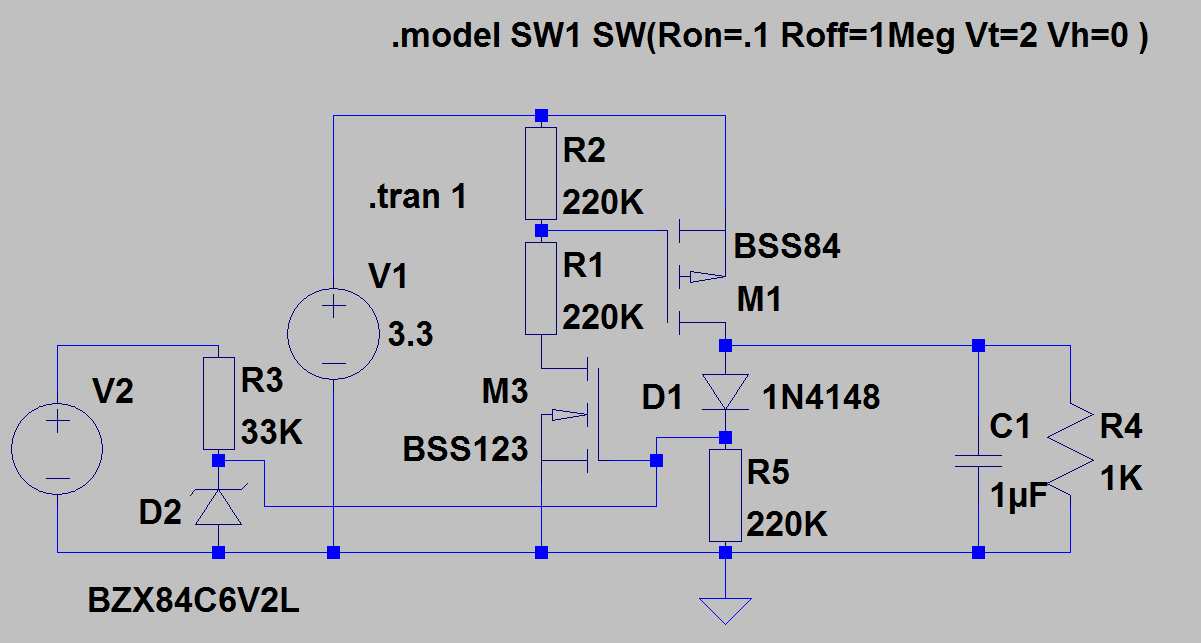 moin, anbei mein Schaltungsvorschlag. Die FETs waren in LTC vorhanden. C1+R4 bilden die angeschlossene Schaltung. SW1 soll der Reedkontakt sein. Mit R1 wird der Haltestrom halbiert. Habe fertig.